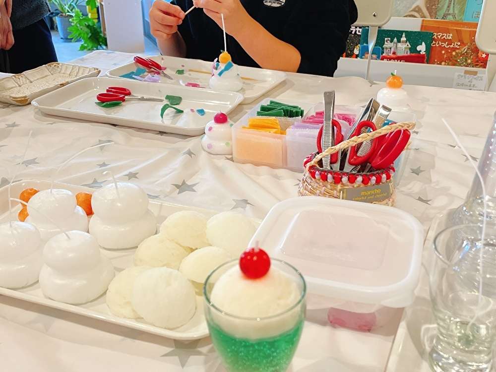 この日はキャンドル作家さんがクリスマス風なクリームソーダキャンドルと鏡餅キャンドルのワークショップを開催。