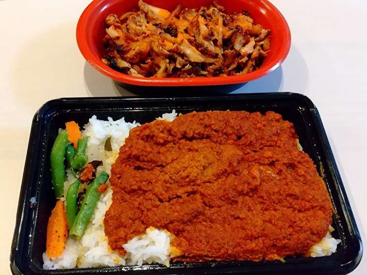 たっぷり入ったターメリックパウダーとカレーパウダー、ドライカレーとケバブをテイクアウト購入しました。