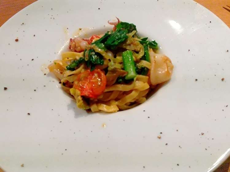 生パスタを用いた本日のパスタは、ヤリイカとフキノトウ、菜の花で春の訪れを感じさせ、心まで優しい気持ちにさせてくれます。