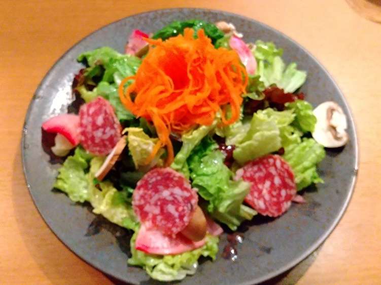 一緒に行った家族は、サラダ、パン、パスタまたは肉料理、シャーベット、コーヒー、紅茶またはハーブティーのランチセット1,800円を注文。