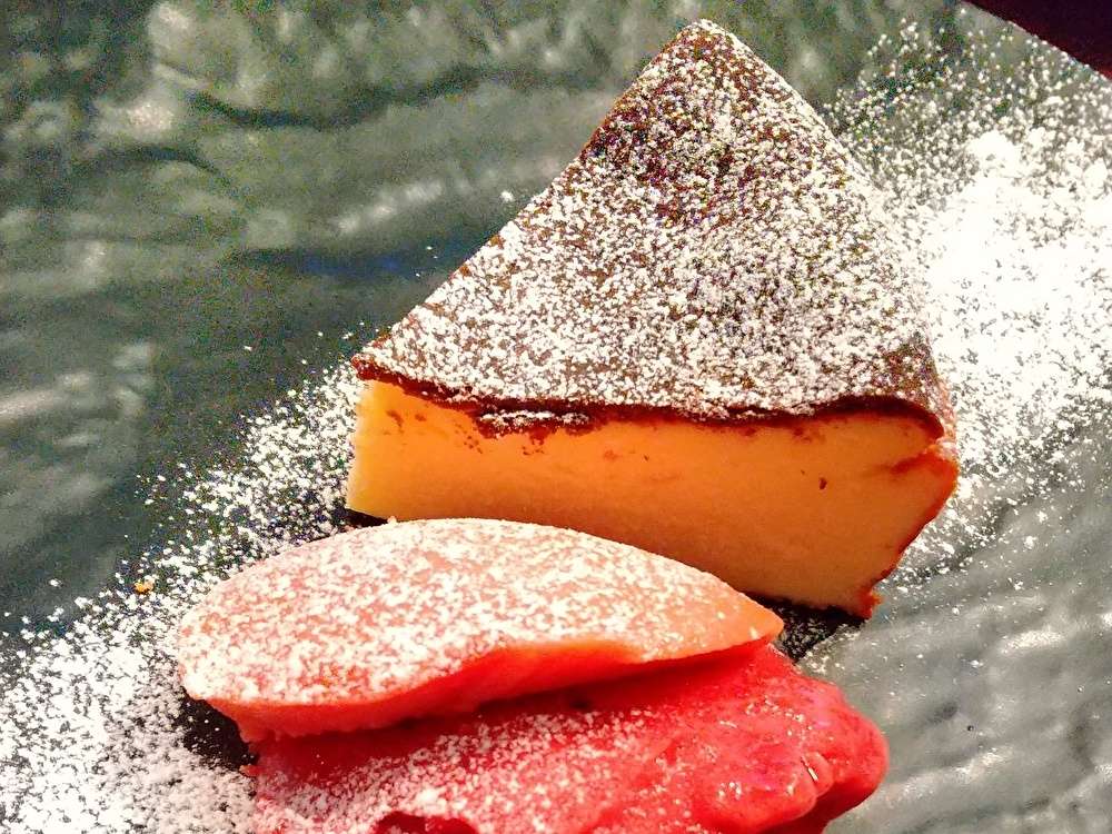 ブラッドオレンジシャーベットの酸味とカシスシャーベットの甘味、バスク風チーズケーキの濃厚なチーズ、ひとつひとつに大満足。
