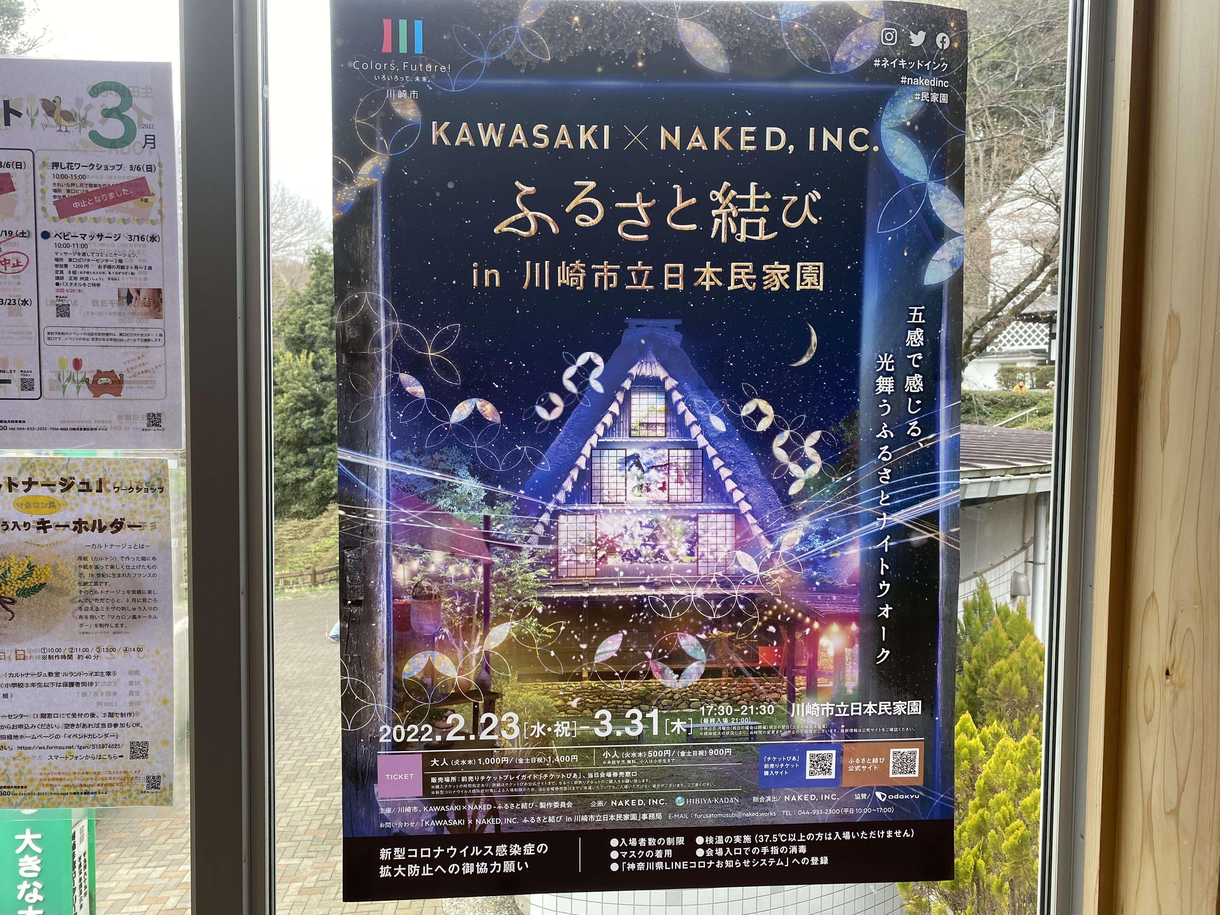 令和4年2月23日〜3月31日までの期間限定で生田緑地にある民家園でプロジェクションマッピングイベントふるさと結びが開催中です。