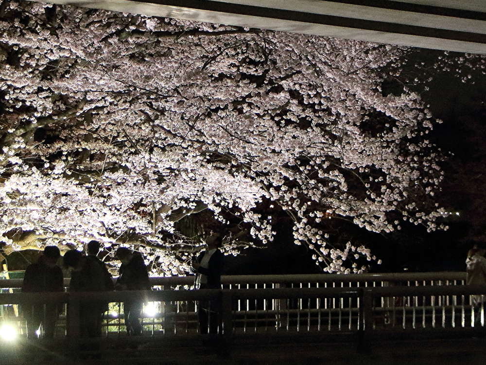 夕方から夜にかけての桜並木も情緒があっていいものです。
