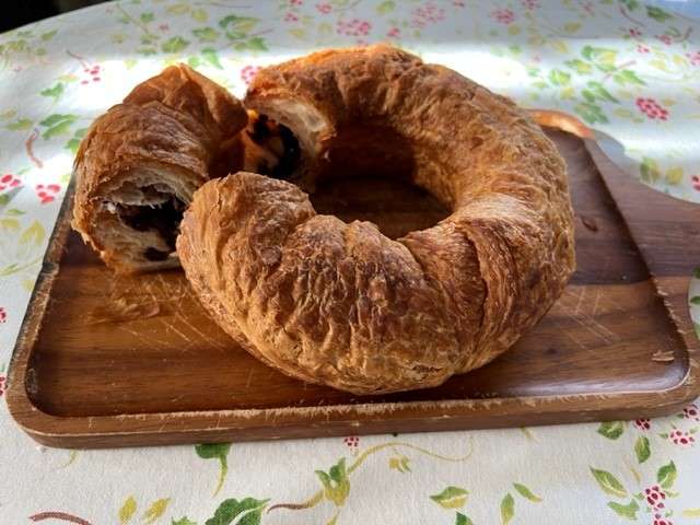 何層ものクロワッサン生地の中に、チョコチップがたっぷり入っています。