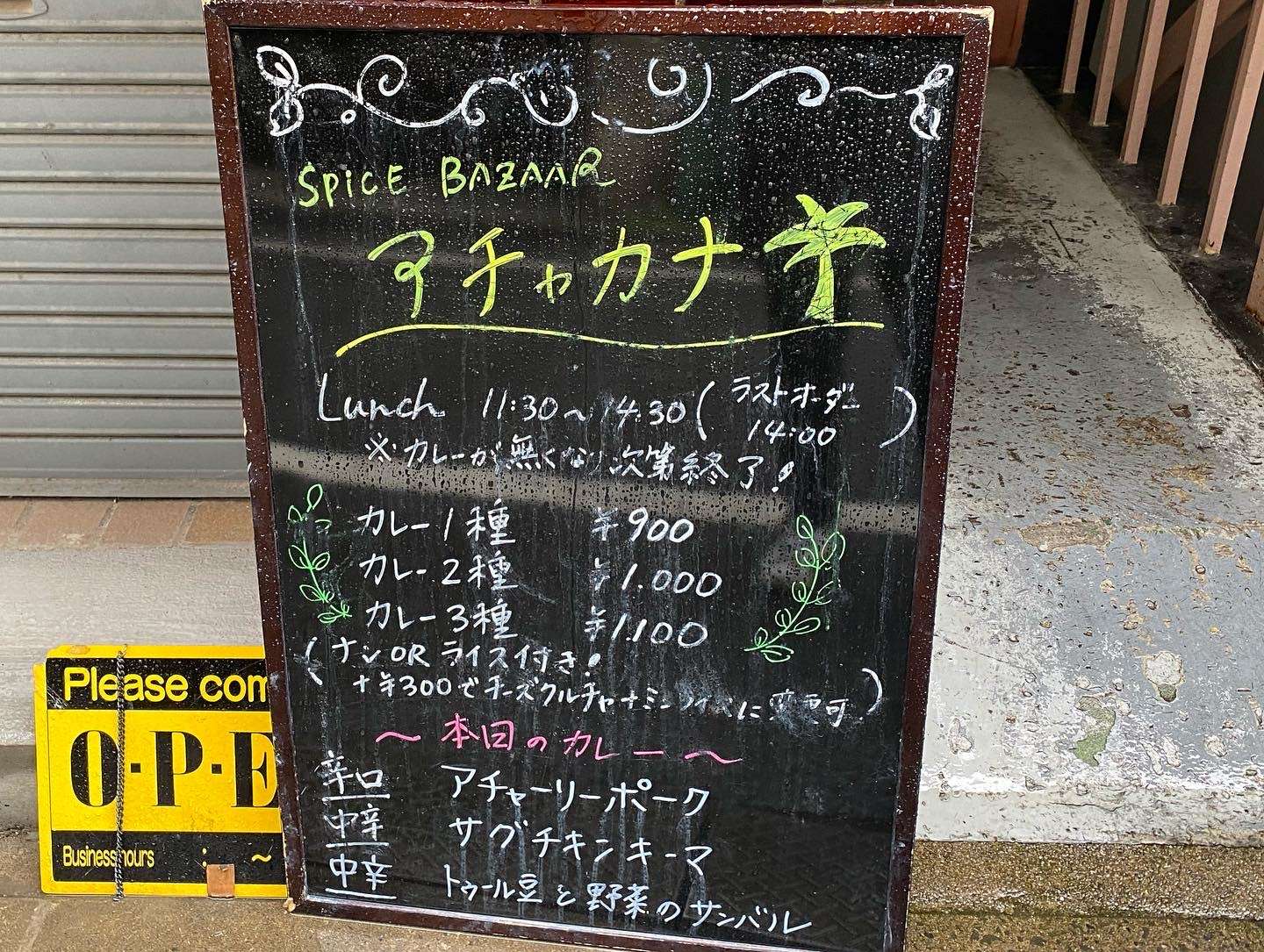 どれも美味しそうで迷いましたがアチャーリーポークとサグチキンキーマの2種を頼みました。