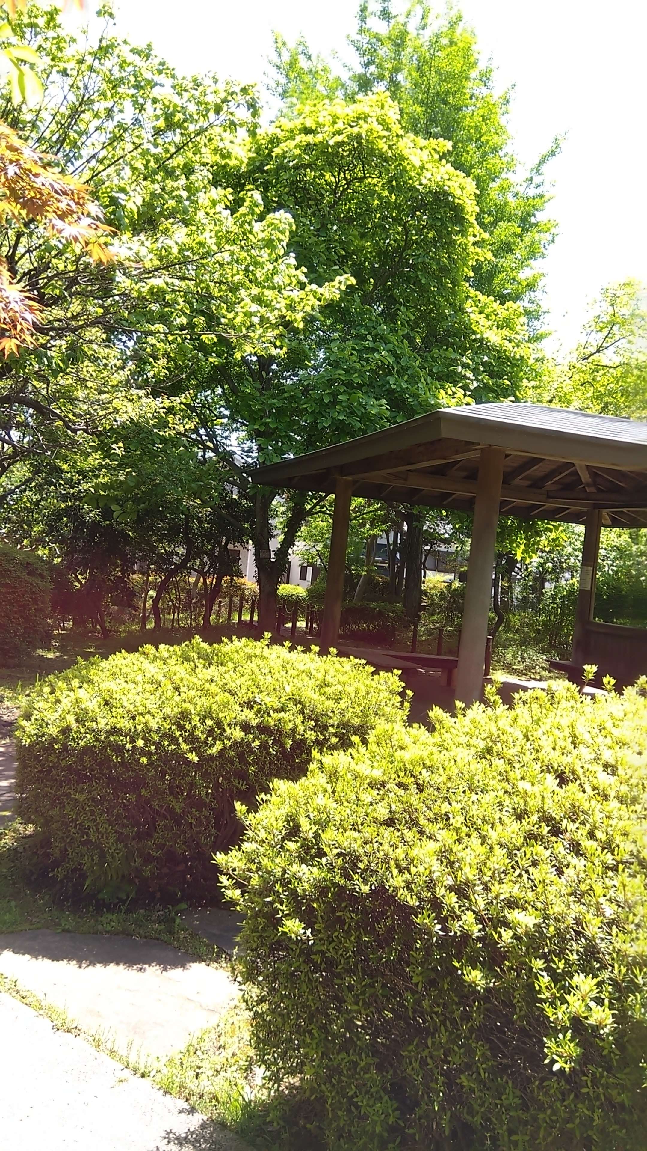 楓や紅葉や松やサルスベリやキンモクセイなどたくさんの木々に囲まれ、鳥がさえずり、僅かの時間でもリフレッシュします。