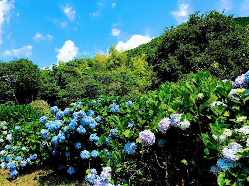 秋には独特の赤い花が各所で美しく咲き誇り、ヒガンバナ以外にもウメ・サクラ・アジサイ・ハナショウブなどが多く見られます。