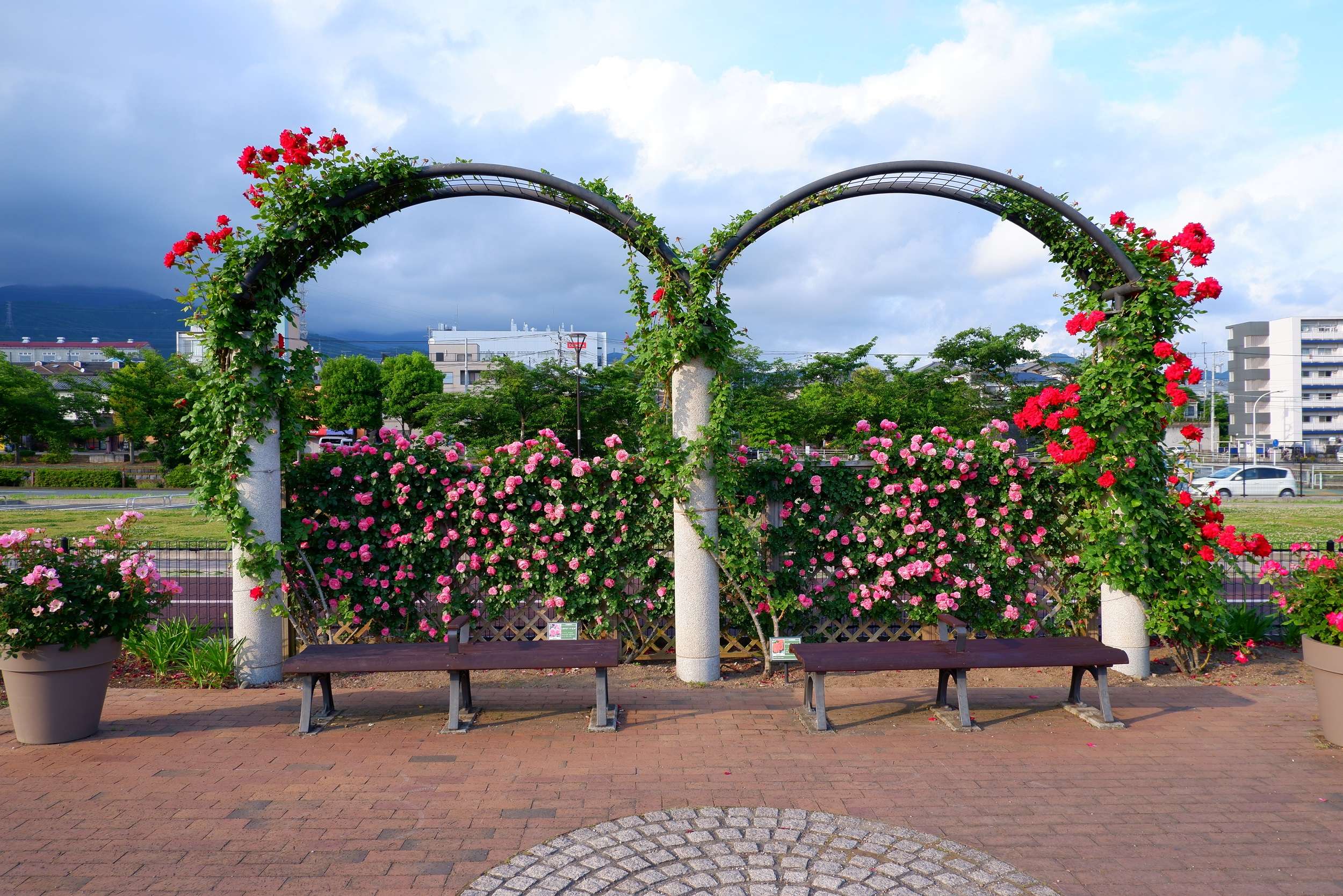 こちらのバラ園では5月中旬から6月上旬と10月中旬から11月上旬に見ごろを迎えます。