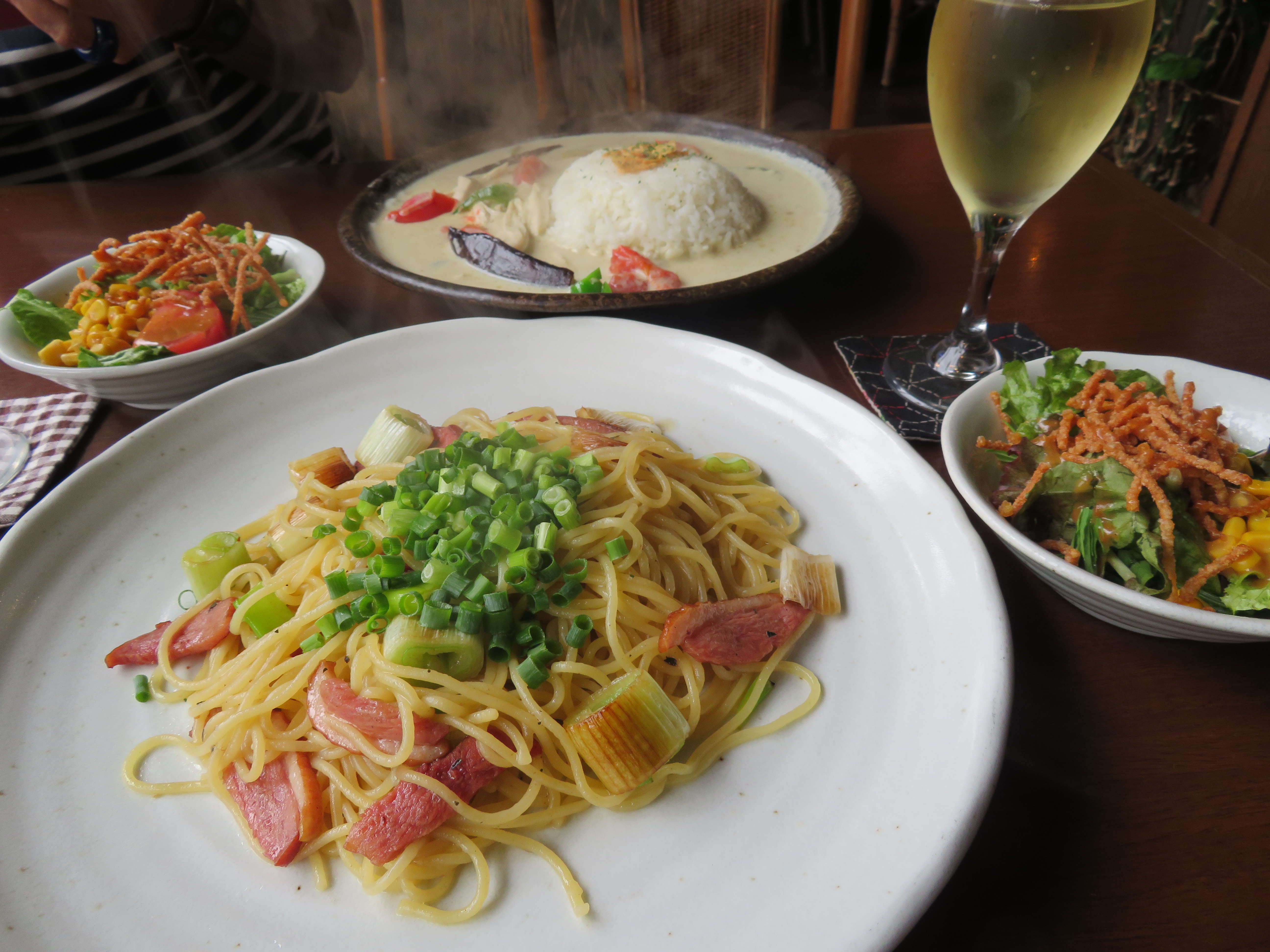 今回は、合鴨と長葱の和風オイルパスタとグリーンカレーにしました。