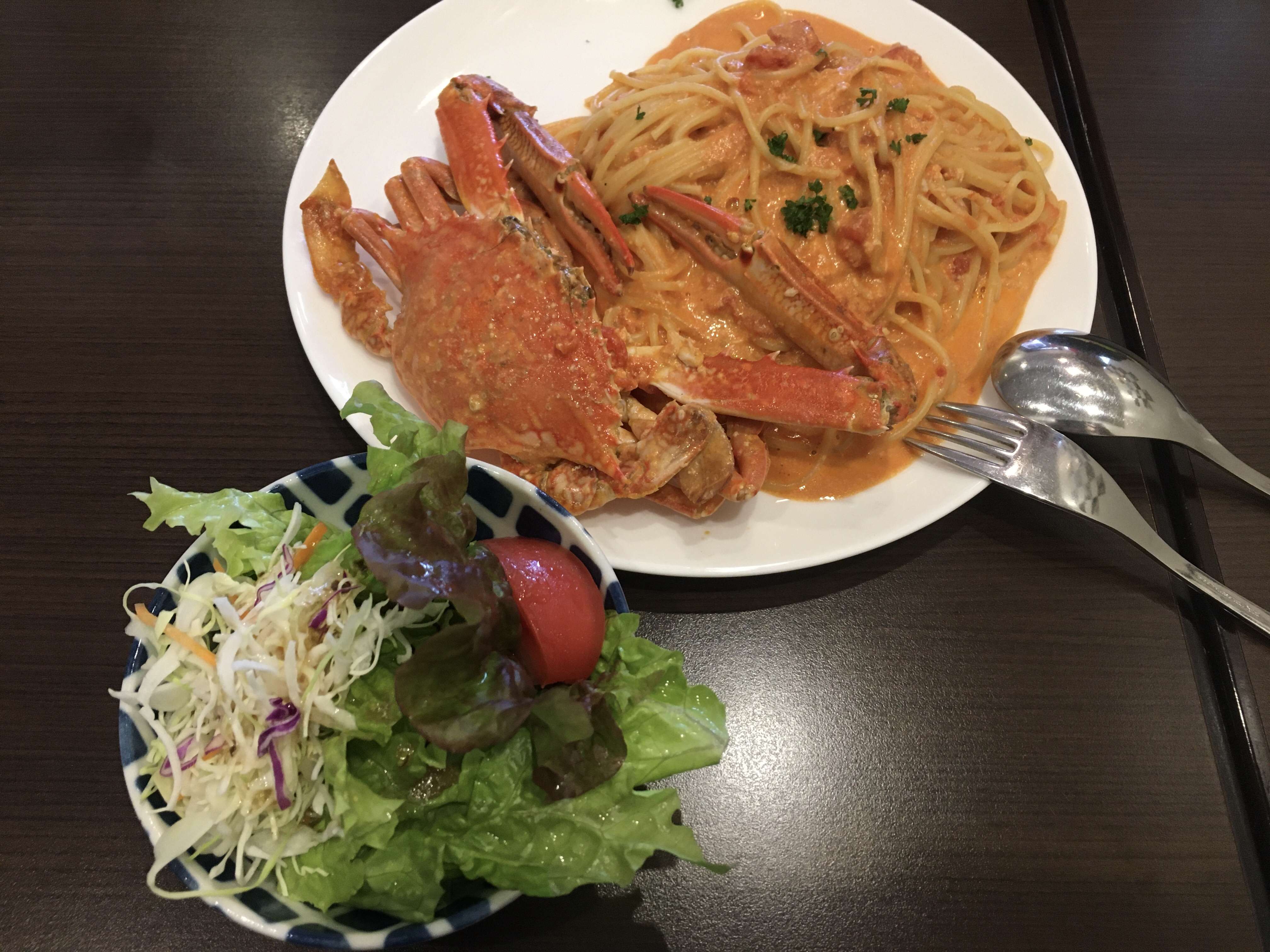 おすすめはワタリガニのトマトクリームパスタと北海道牛肉のハンバーグ。