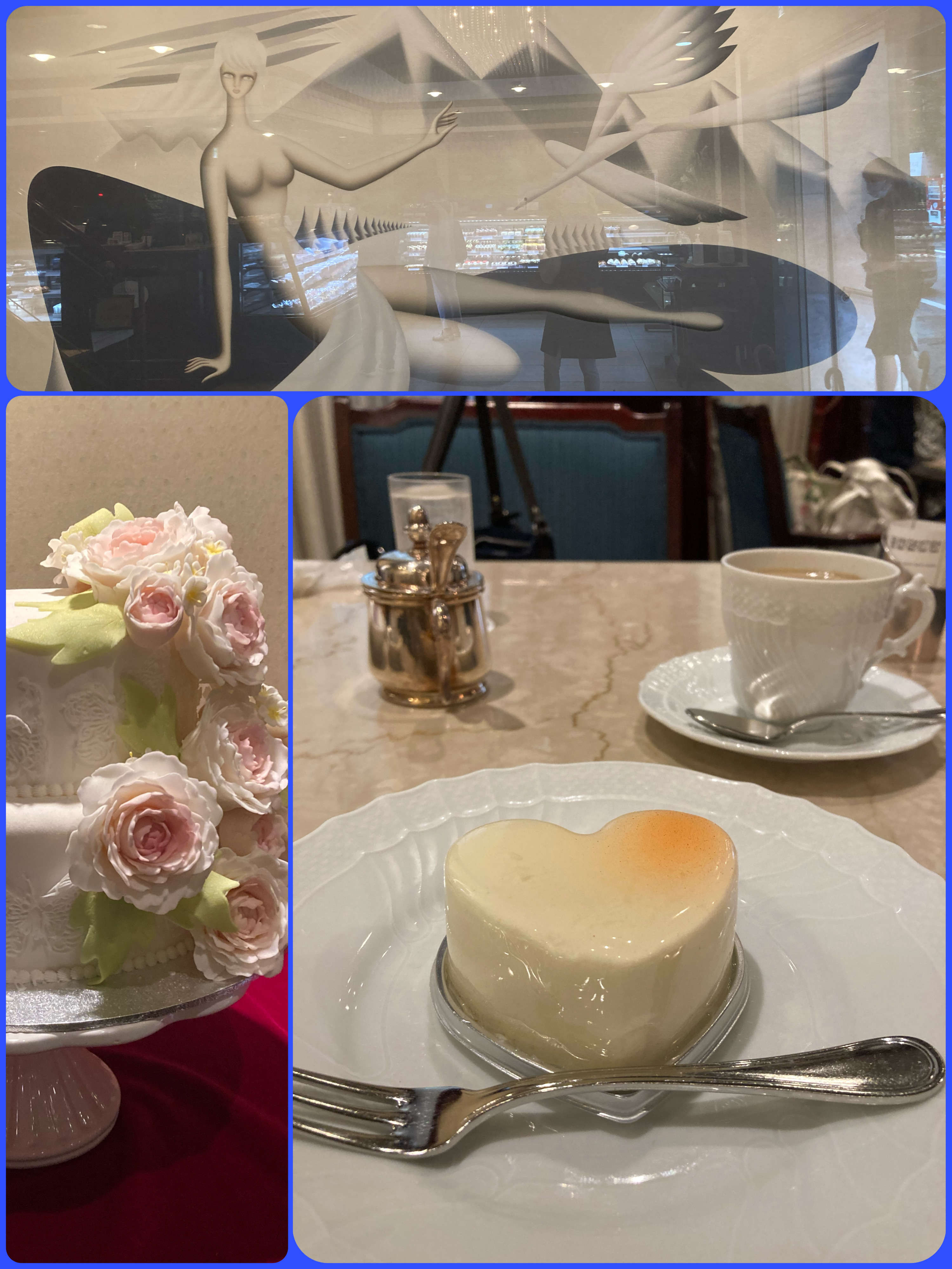 店内はゆったりとしていて、東郷青児の絵画やカラフルなケーキや焼き菓子のショーケース、シックなインテリアが素敵です。