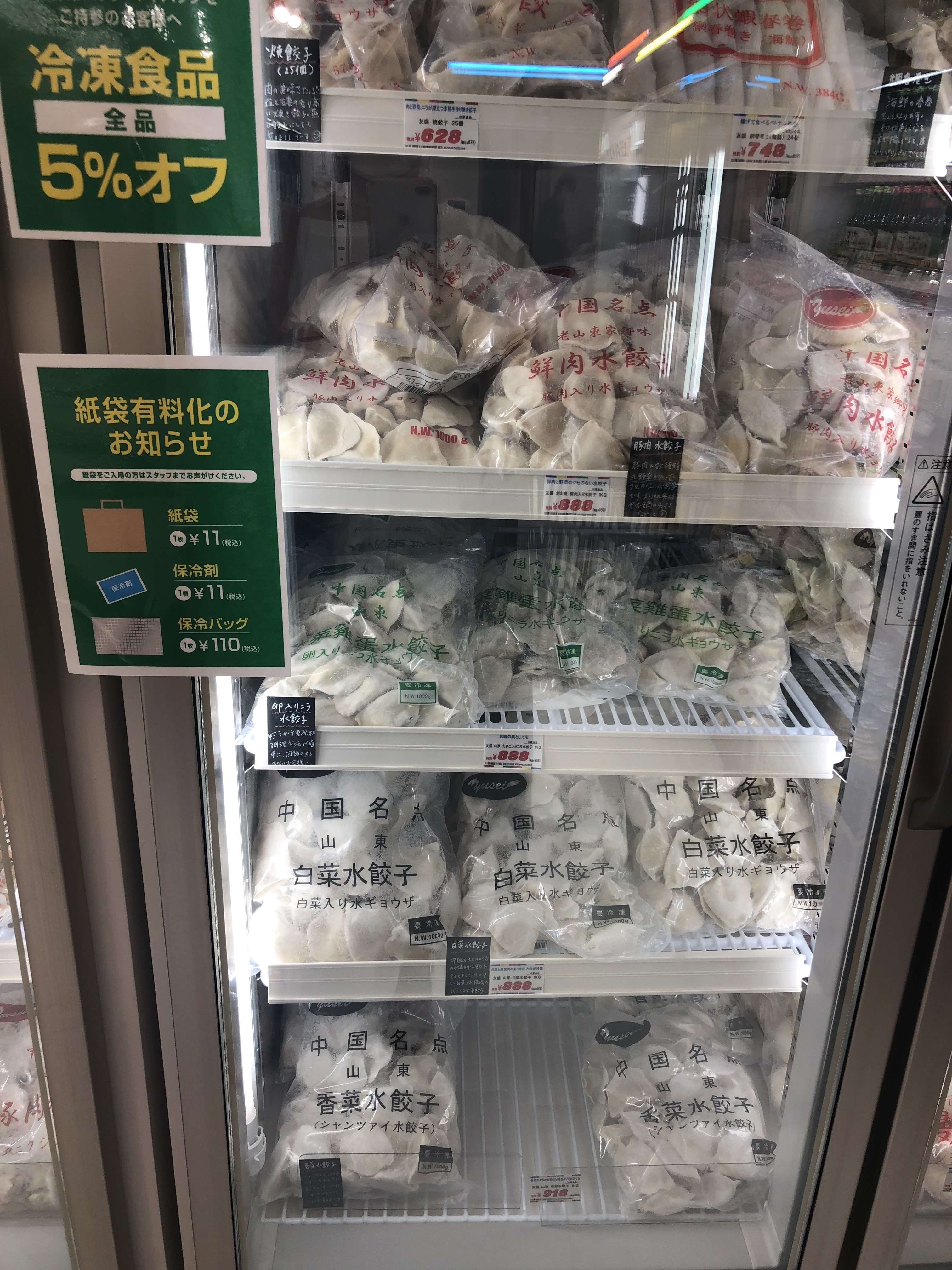 冷凍の餃子やちまきなど台湾や中国などアジアで人気な冷凍食品が種類豊富に陳列されている。