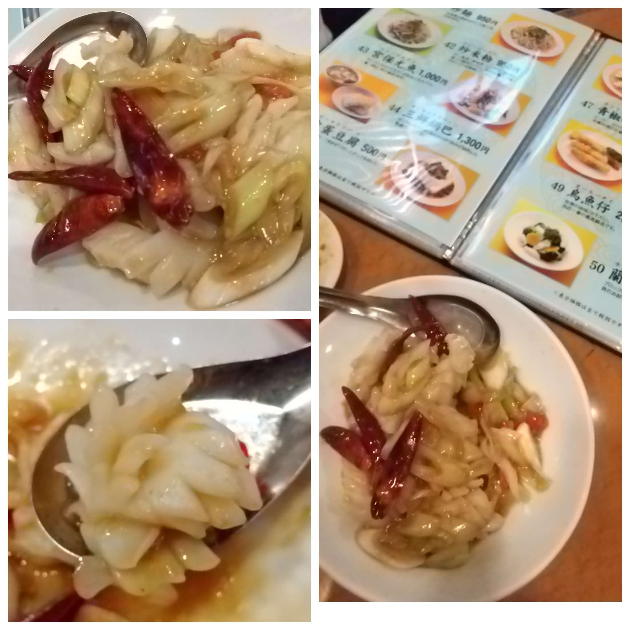 モンゴウイカの炒め物は、プリプリのイカの食感が楽しいお気に入りの一品です。他にも海鮮を使った料理がたくさんあります。