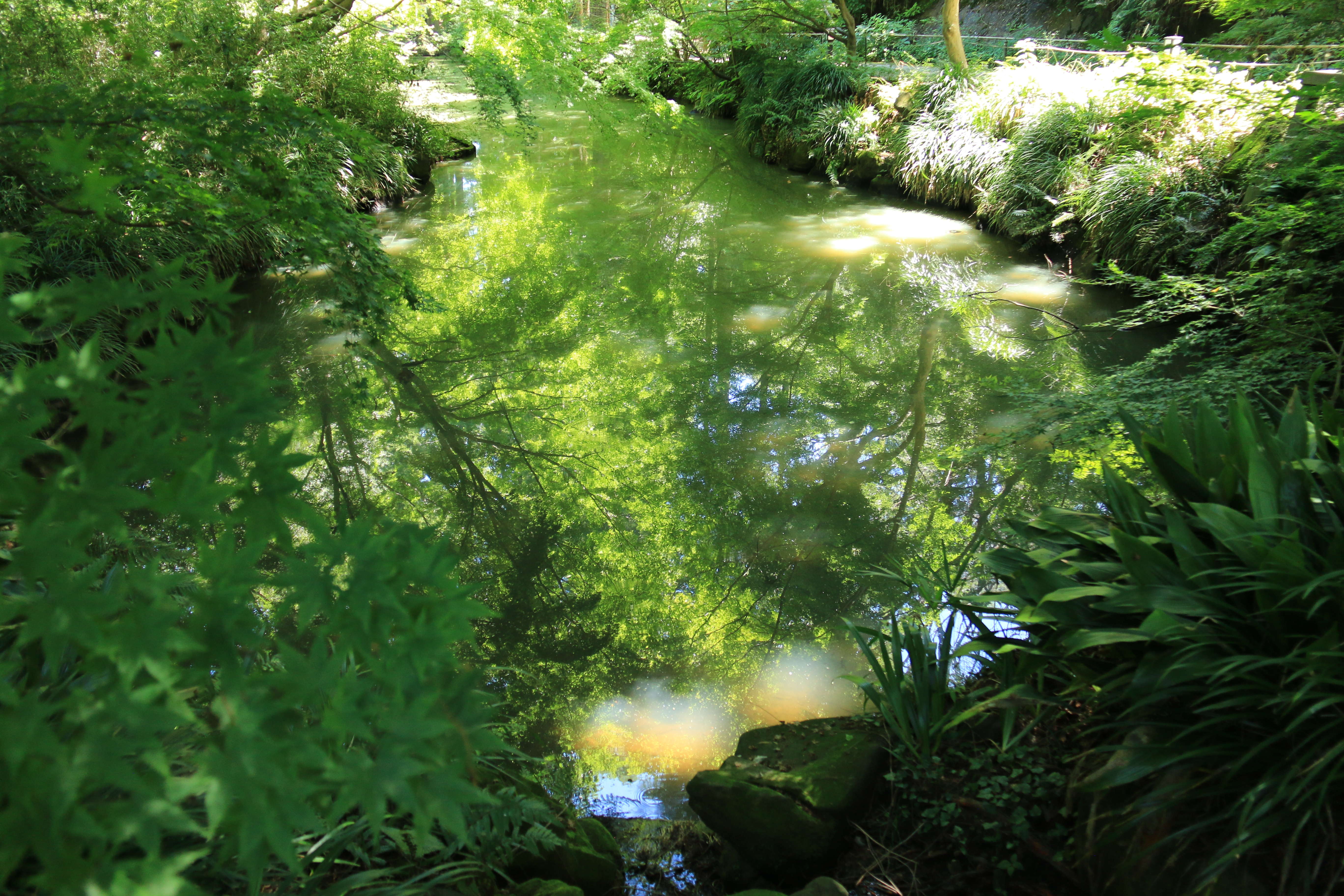 奥の池にはまさに緑一色の世界が写し出され、ニッポンの炎天下の夏の旅人にとってしばしの憩いの場になるのだ。