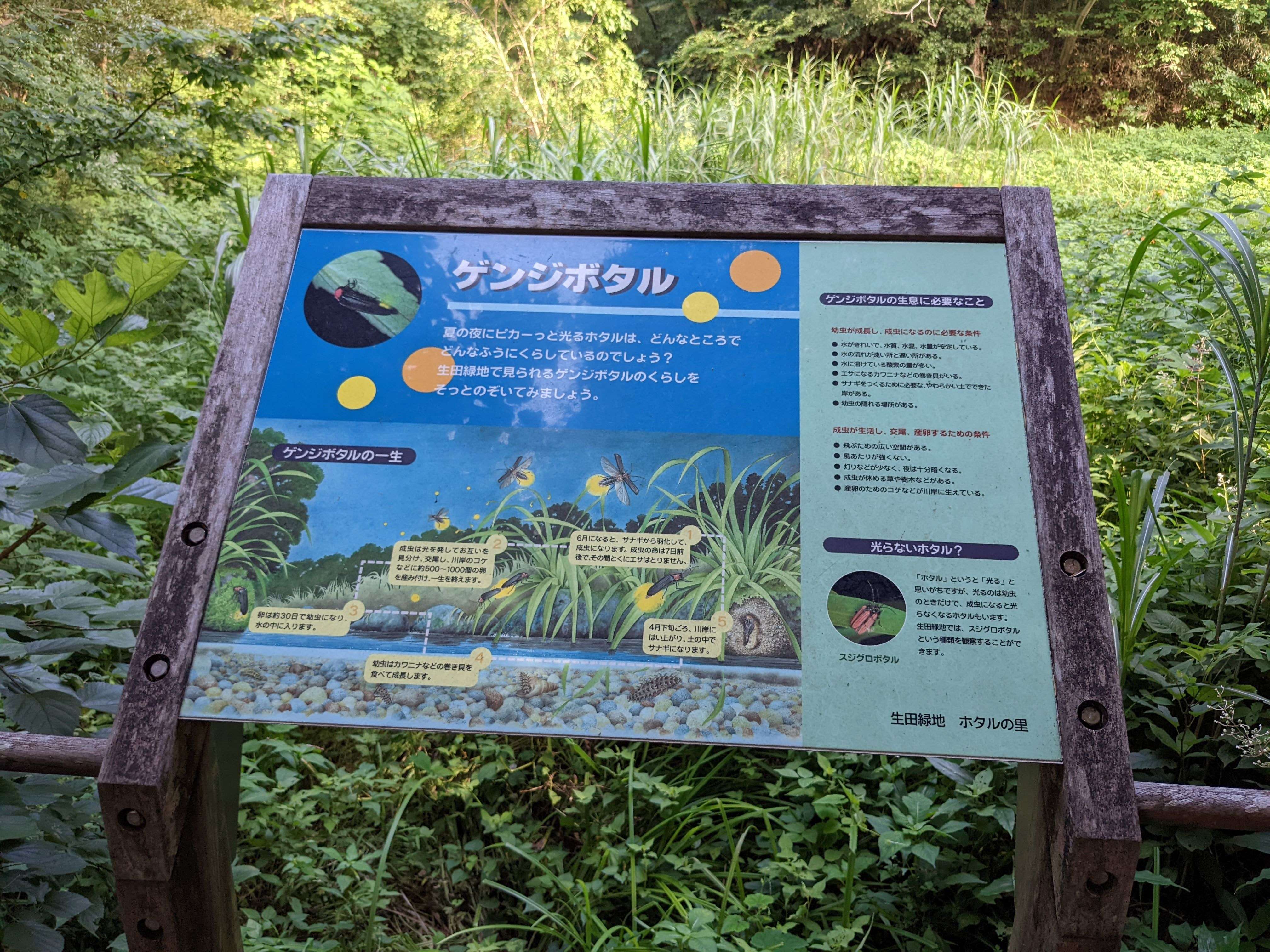 「ホタルの里」では、毎年6月にゲンジボタルの光の舞を観察できる。