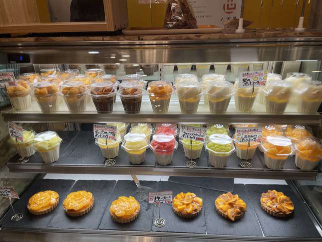 フルーツたっぷりのスイーツたちも冷蔵ケースできらめいていました。