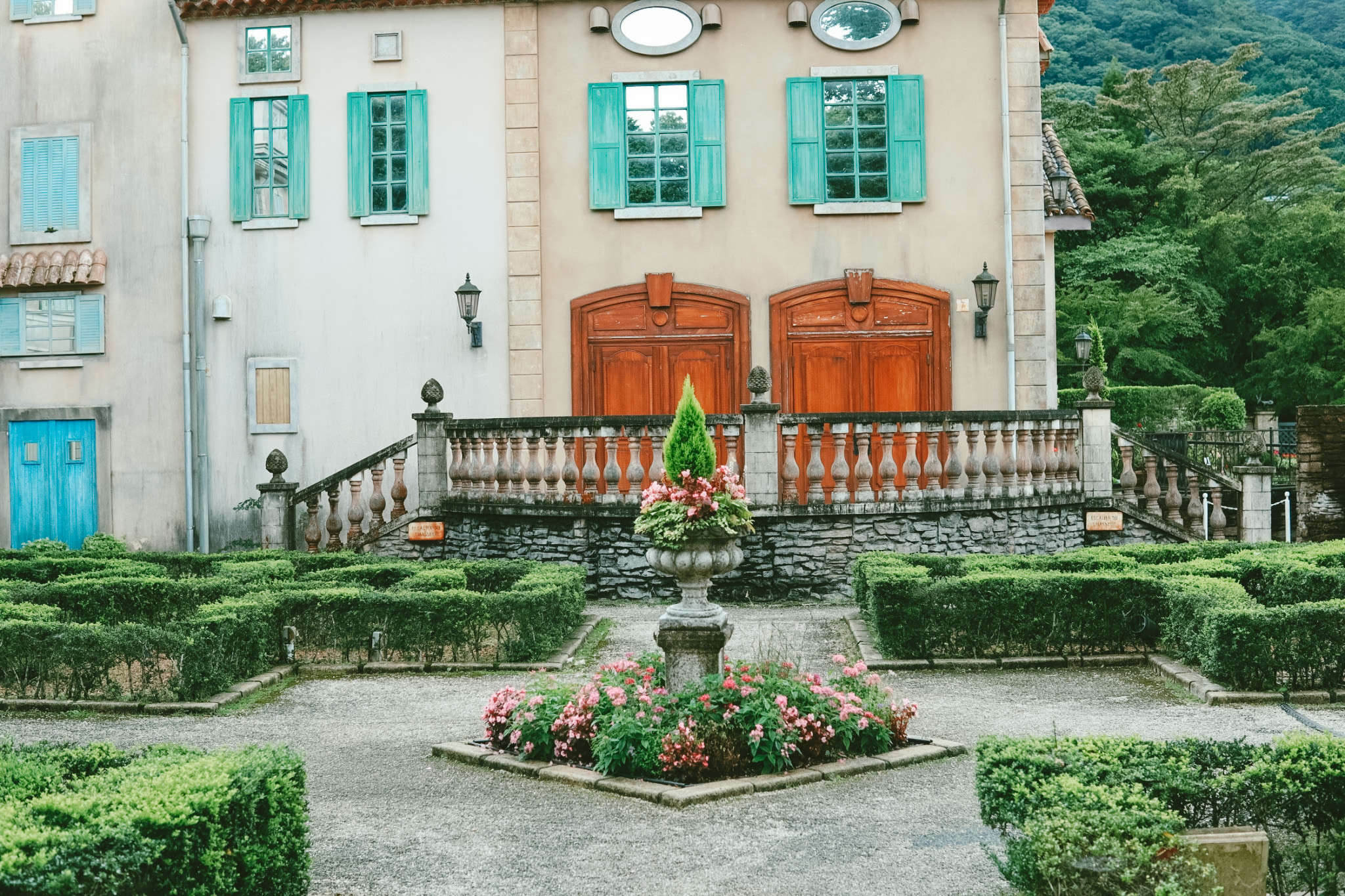 淡いカラーでまとめられた建物と緑は四季折々楽しむころができそうです。