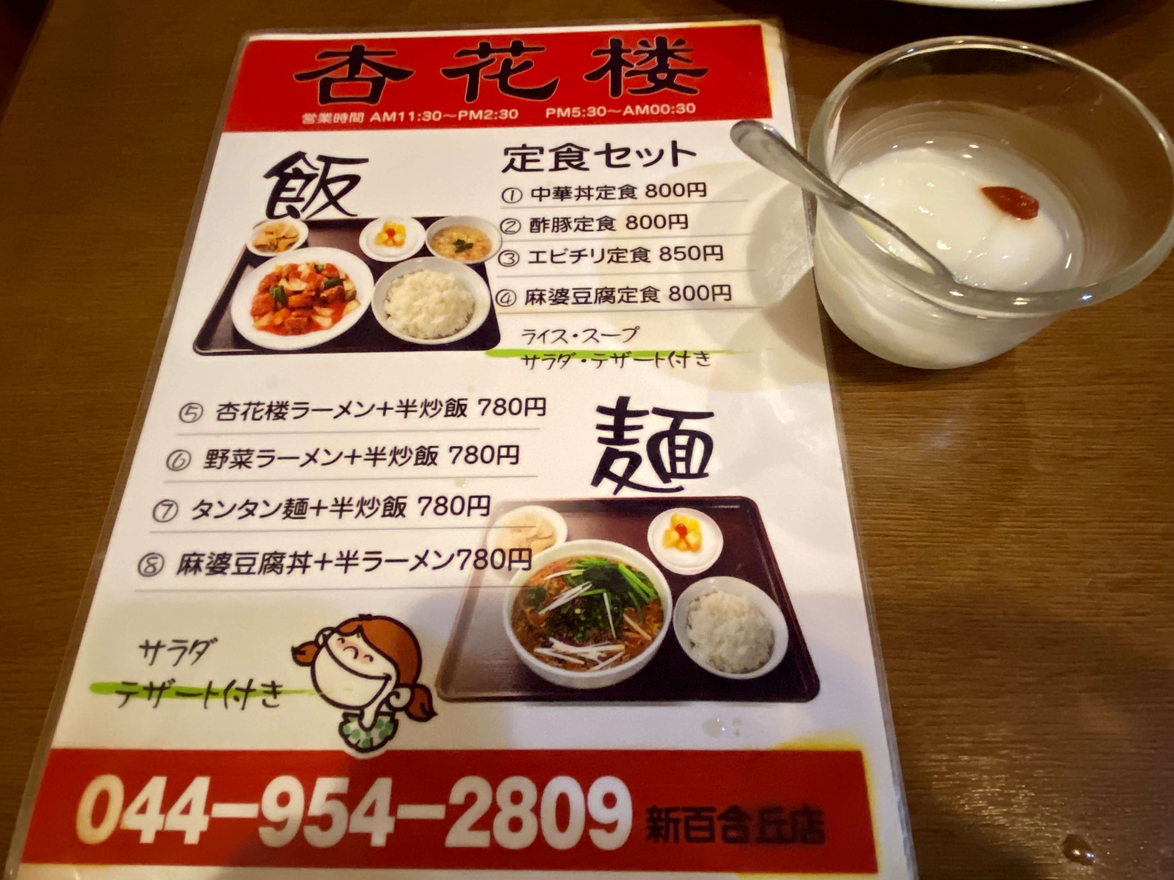 新百合ヶ丘駅北口から徒歩3分の杏花楼に行ってきました。