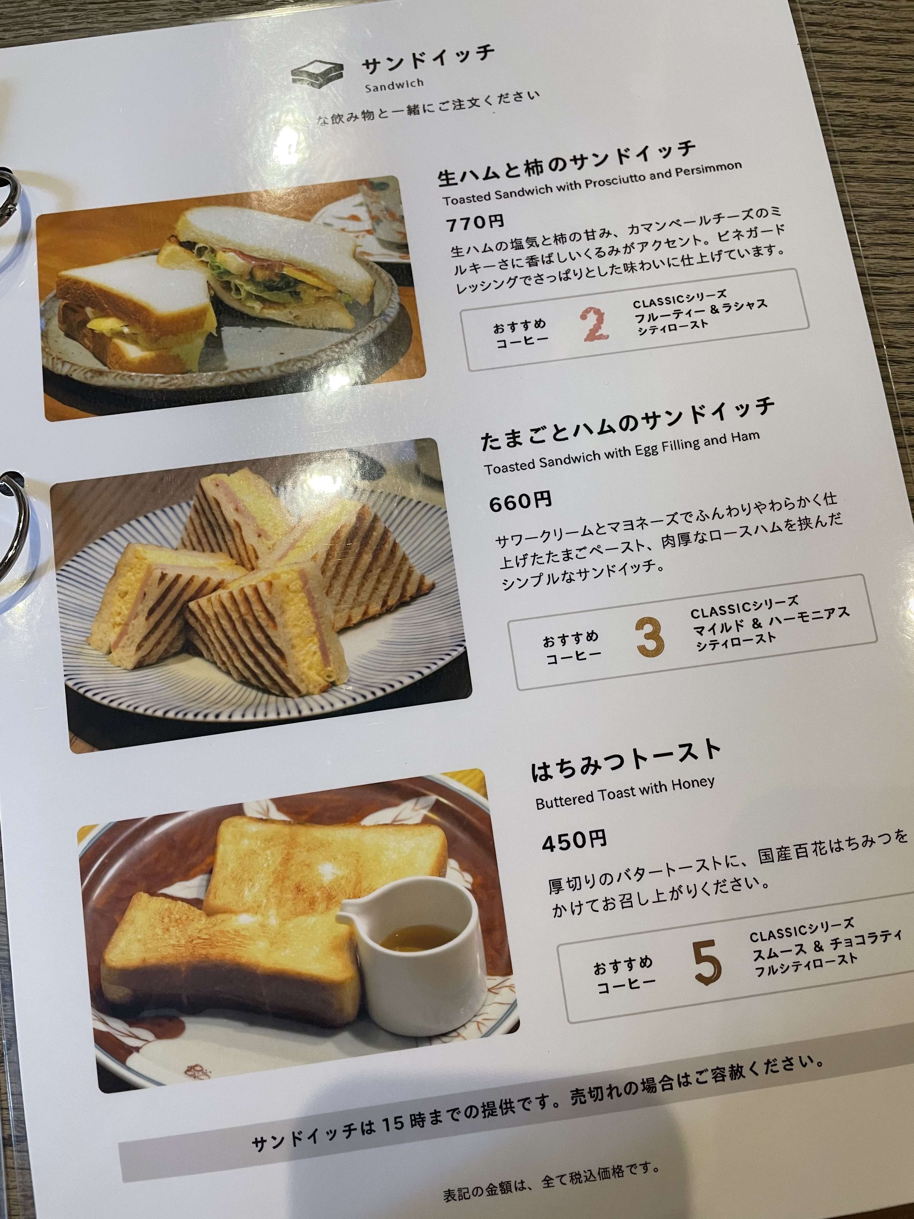 お目当てのケーキが15時ごろになると聞いて、サンドイッチとおすすめのコーヒーを注文。