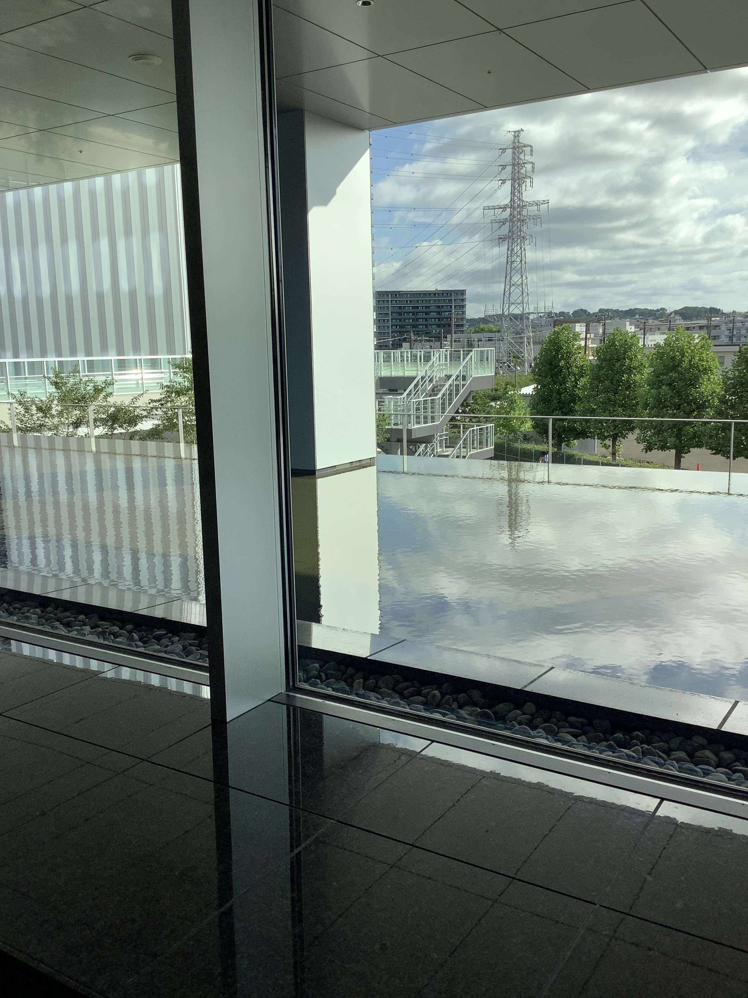 噴水ではないですが、ビル屋外には水が流れるようなしくみになっており、水の流れを見ながらリラックスして休憩することができます。