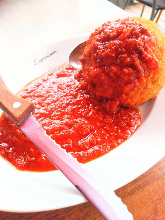 「元祖シチリア風ライスコロッケ、 ミートソースがけ」