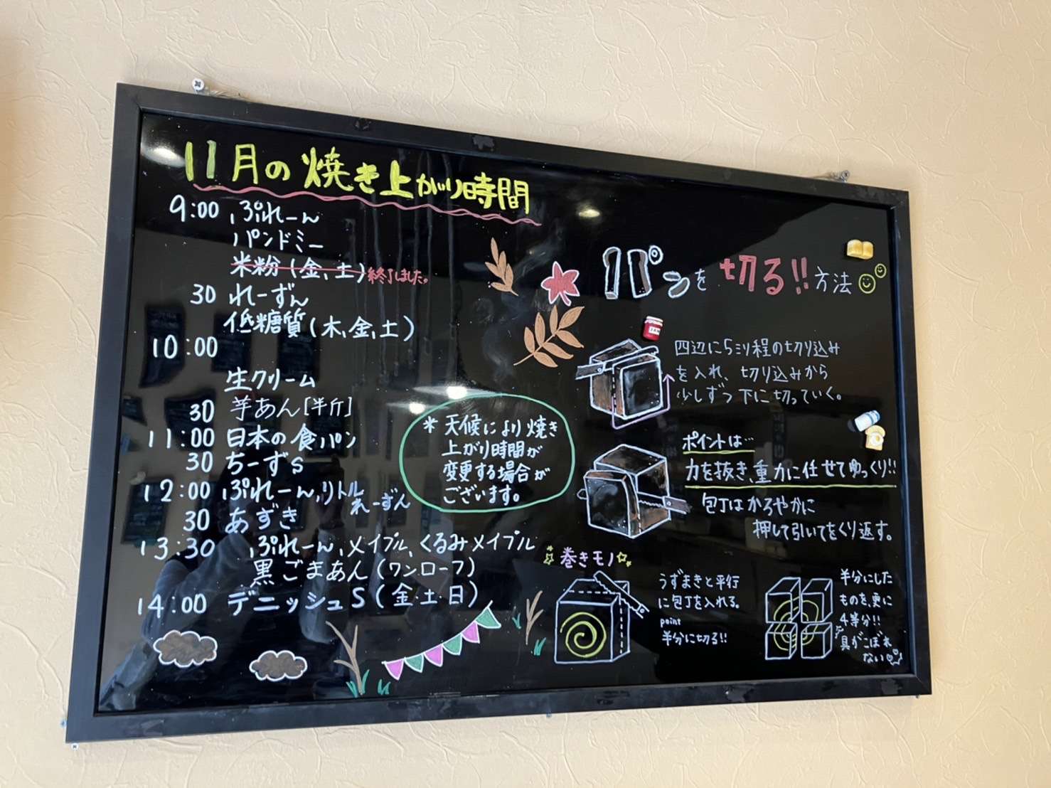 お店の中には11月の焼き上がり時間が掲示されています。