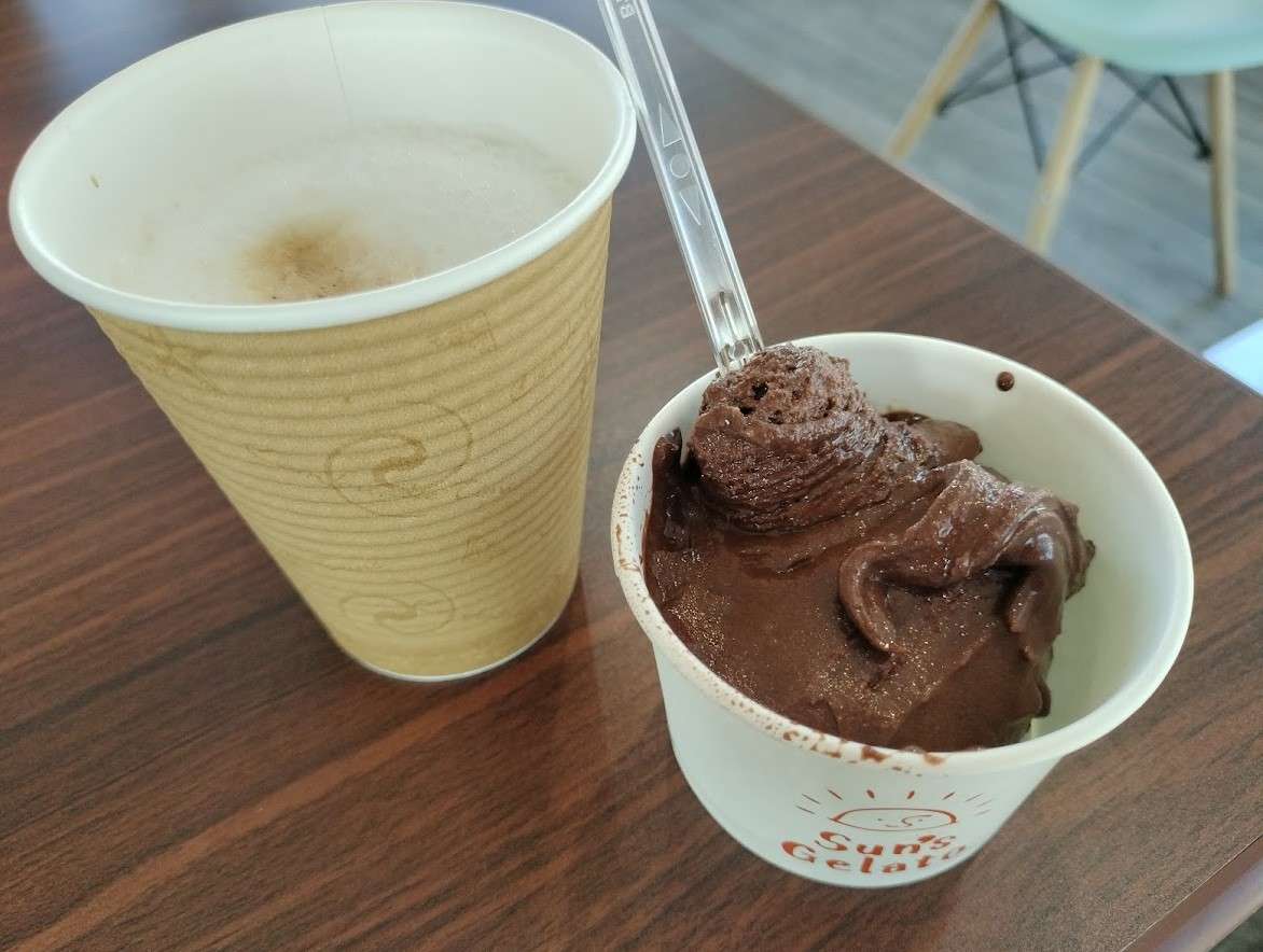 冷たいジェラートには温かい飲み物が合います。