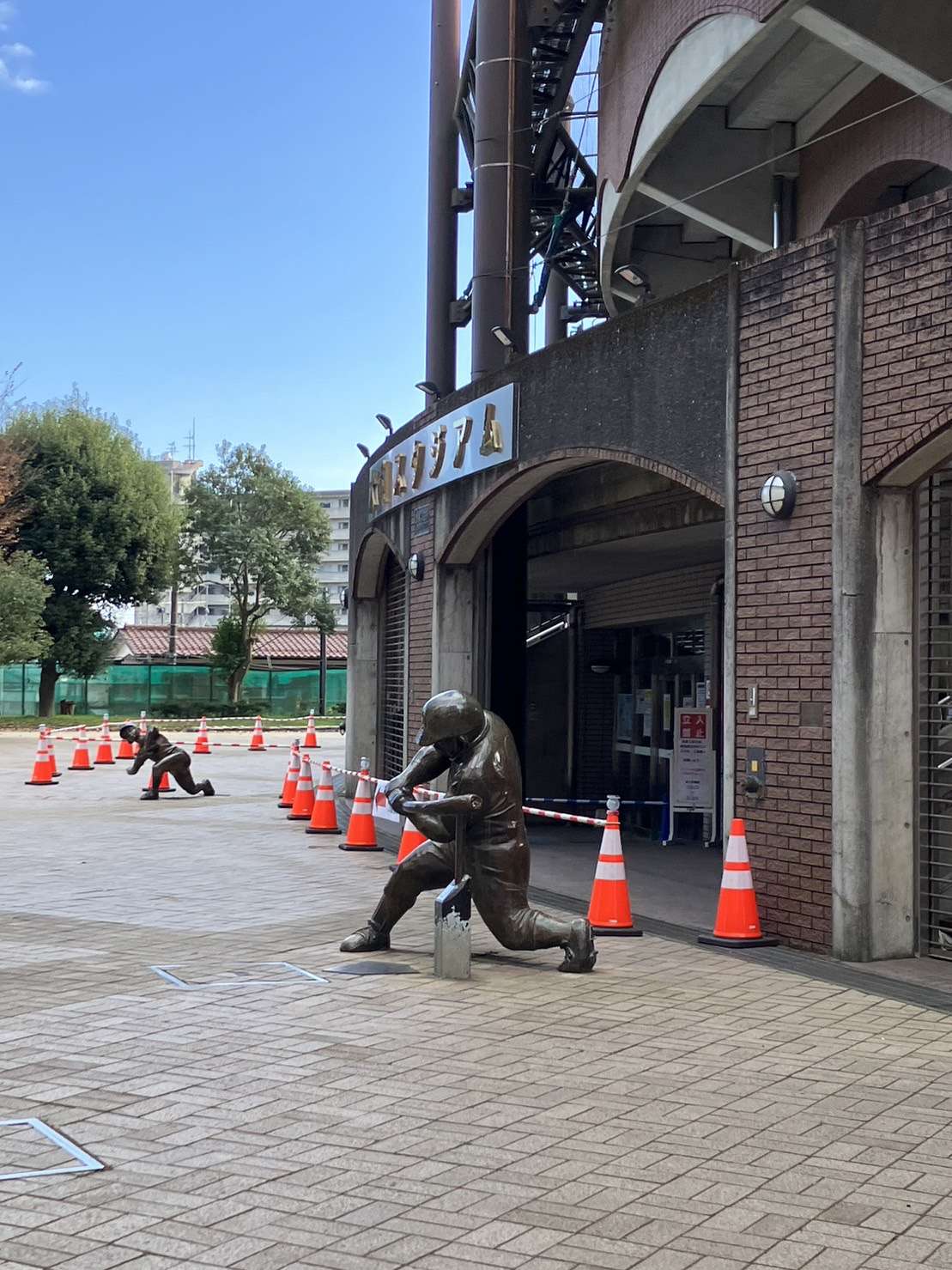 大和スタジアムはドカベンスタジアムとも呼ばれていて、97年に山田と里中の銅像が建てられました。