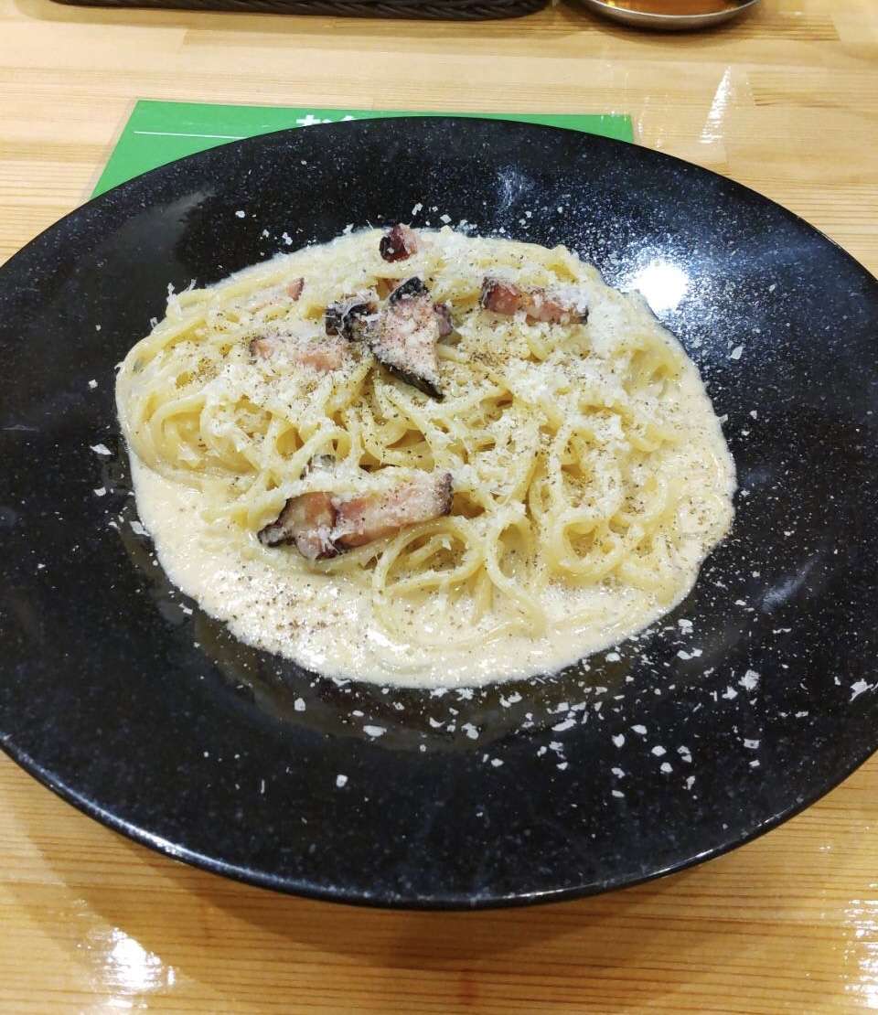 こちらは「ふわふわチーズがたっぷり北海道カルボナーラ」こだわりの卵と北海道の生クリームを使ったパスタです。