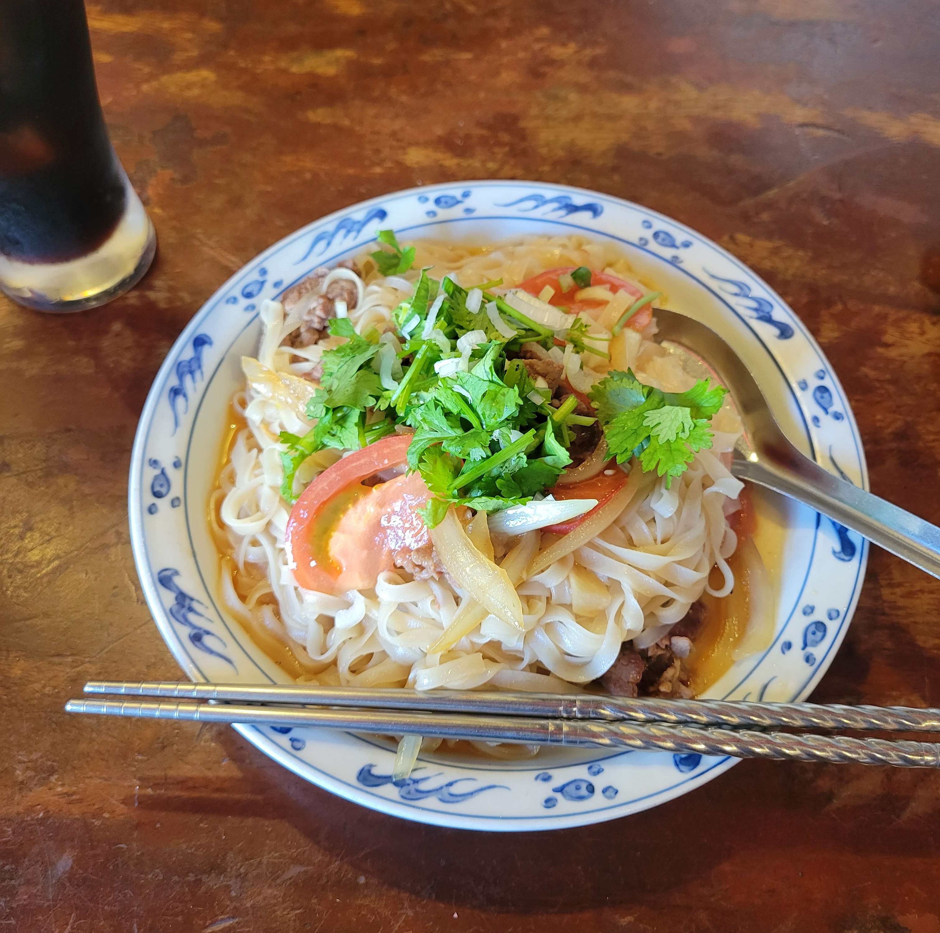 定番フォーや炒めもの、バインセオも美味しくておすすめですが、最近のお気に入りはトマトと牛肉のバター炒めフォーです。