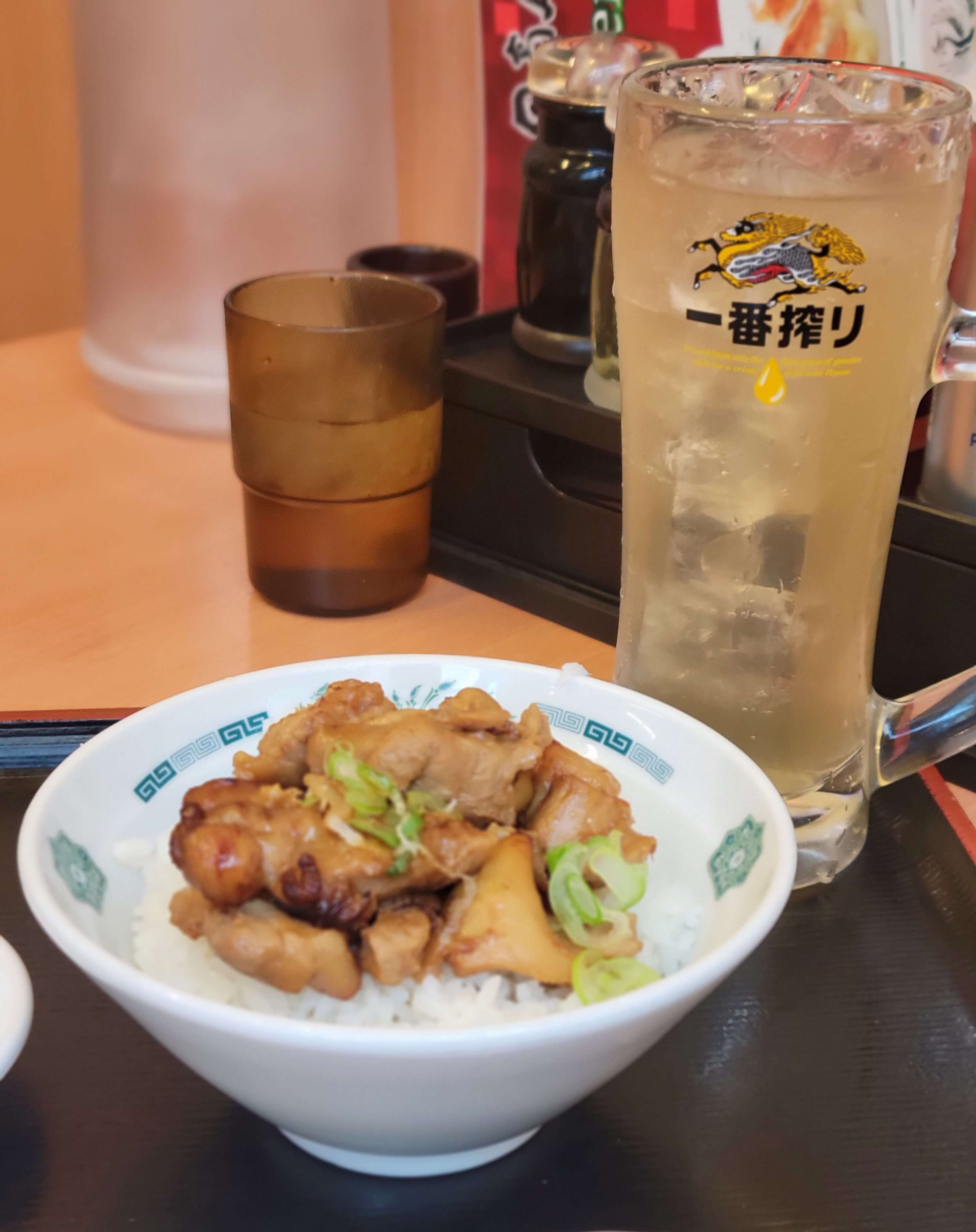 餃子は定番ですが、小ぶりのお椀に入った焼き鳥丼もおすすめ。