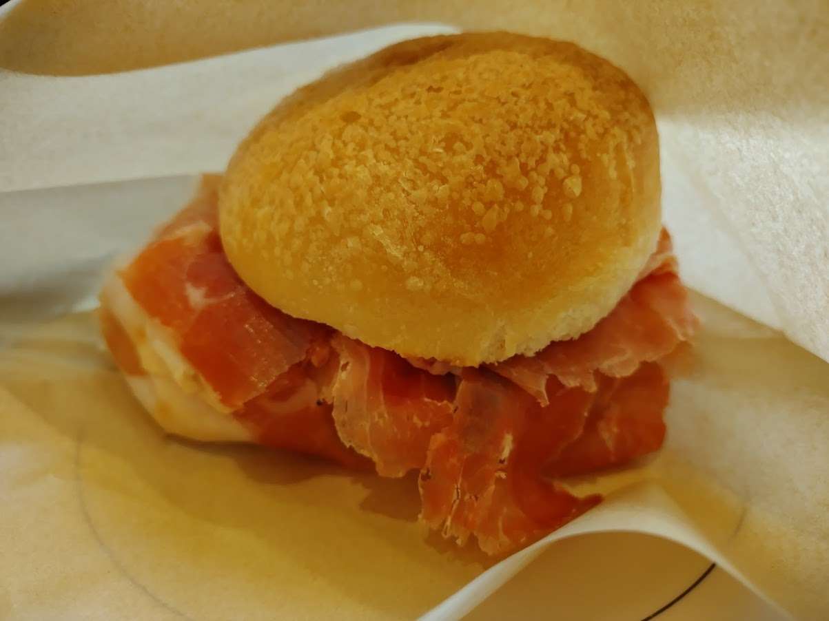 パンの間には、生ハムがこれでもかとぎっしり挟まれていました。