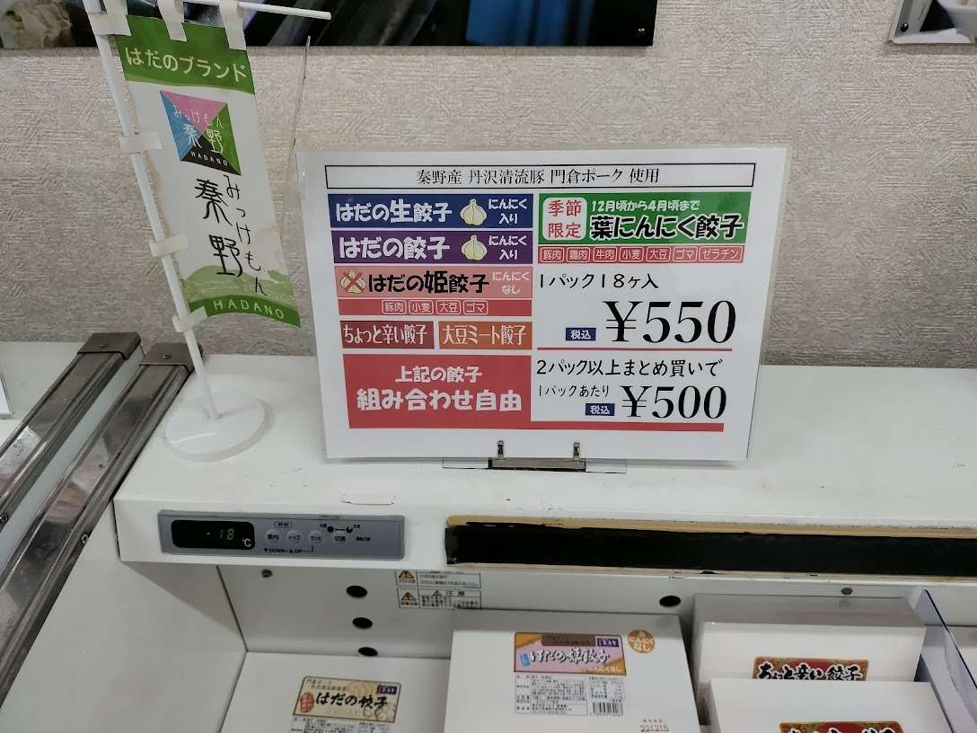 定番の「はだの餃子」以外にも季節限定の商品や、お肉の代替えに大豆ミートを使用した餃子もありました。