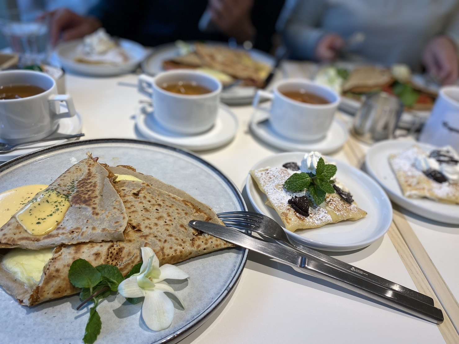 クレープ生地はそば粉に変更可能で、甘いのもしょっぱいのもどちらも食べたい欲張りな私たちはいっぱい頼んでみんなでシェアしました。