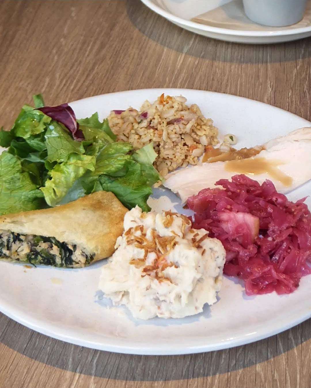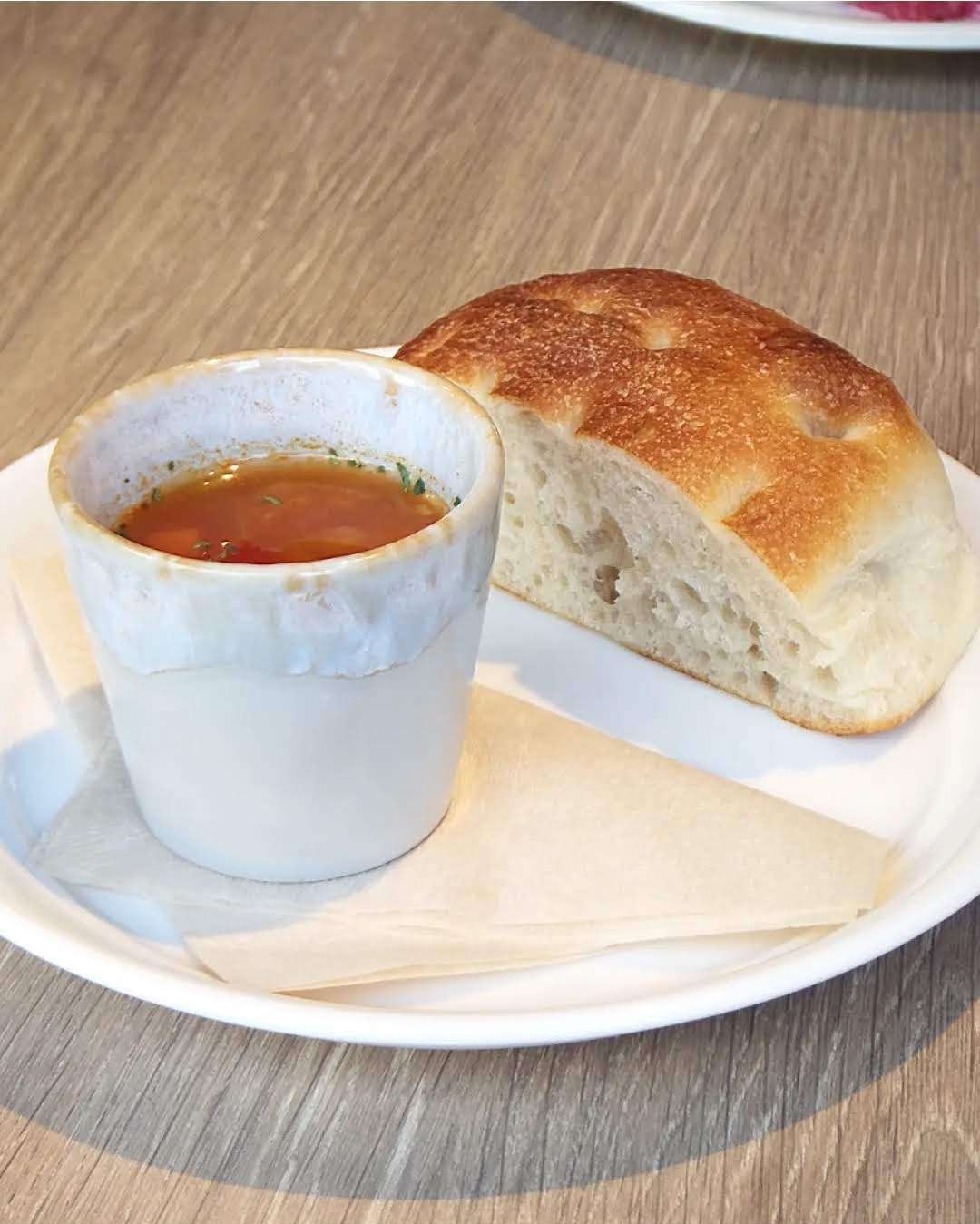 メニューは、食材やバランスにもこだわりがありそうなヘルシーさが特徴的で、私がオーダーした「おそうざい6種SET」には色とりどりのお惣菜に、パンとスープ、ドリンクも付いてきました。
