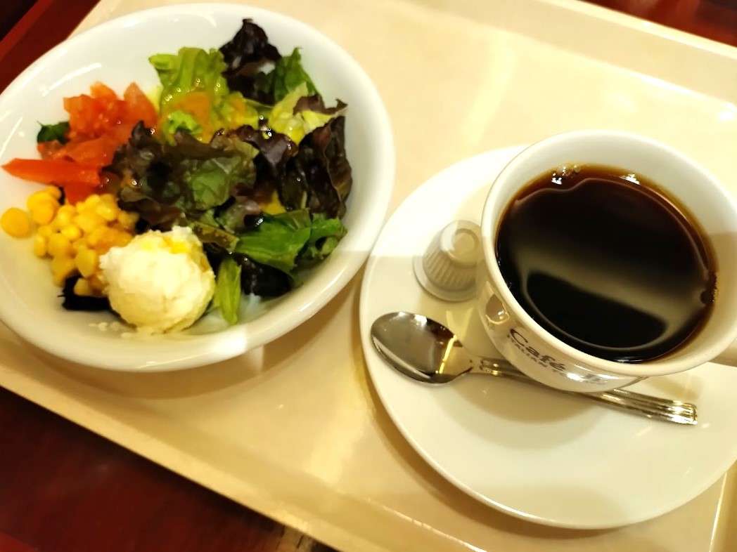 最初にサラダとコーヒーが運ばれてきました。