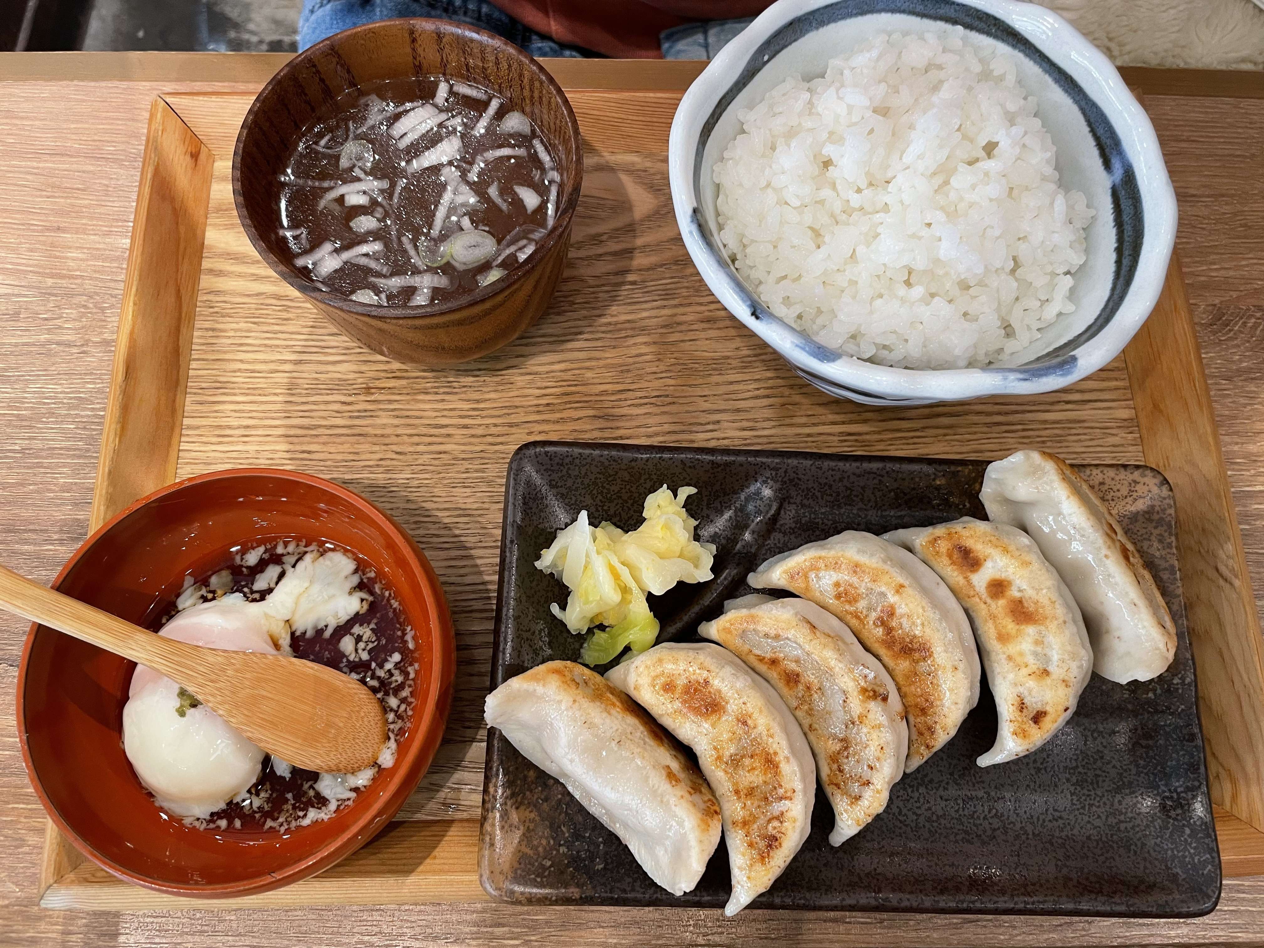 白米もスープもモリモリ食べました。取り分けランチは大盛りに、追加の餃子もお忘れなく。