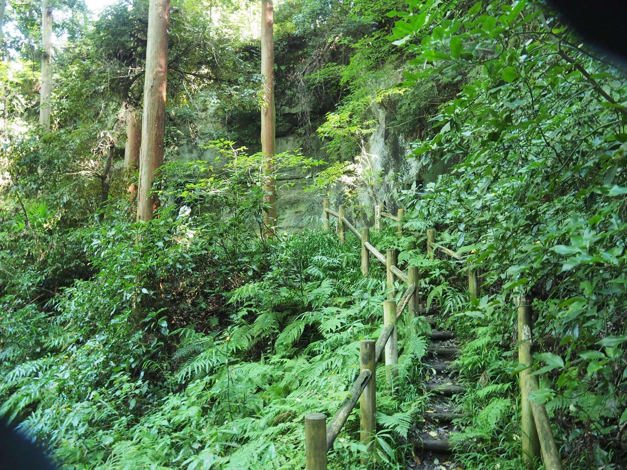繁る草や木の根、苔むした岩や階段を登り降りするので、運動靴など滑りにくい靴と手が使える状態でお出かけください。
