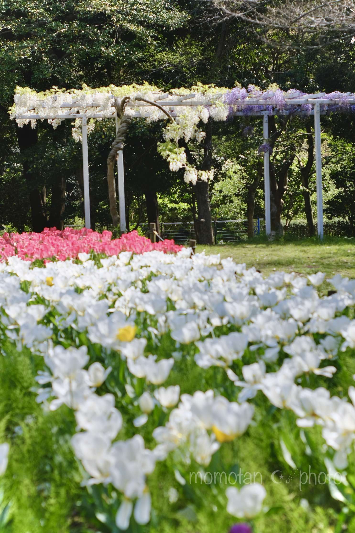 白と紫の二色の藤棚です。