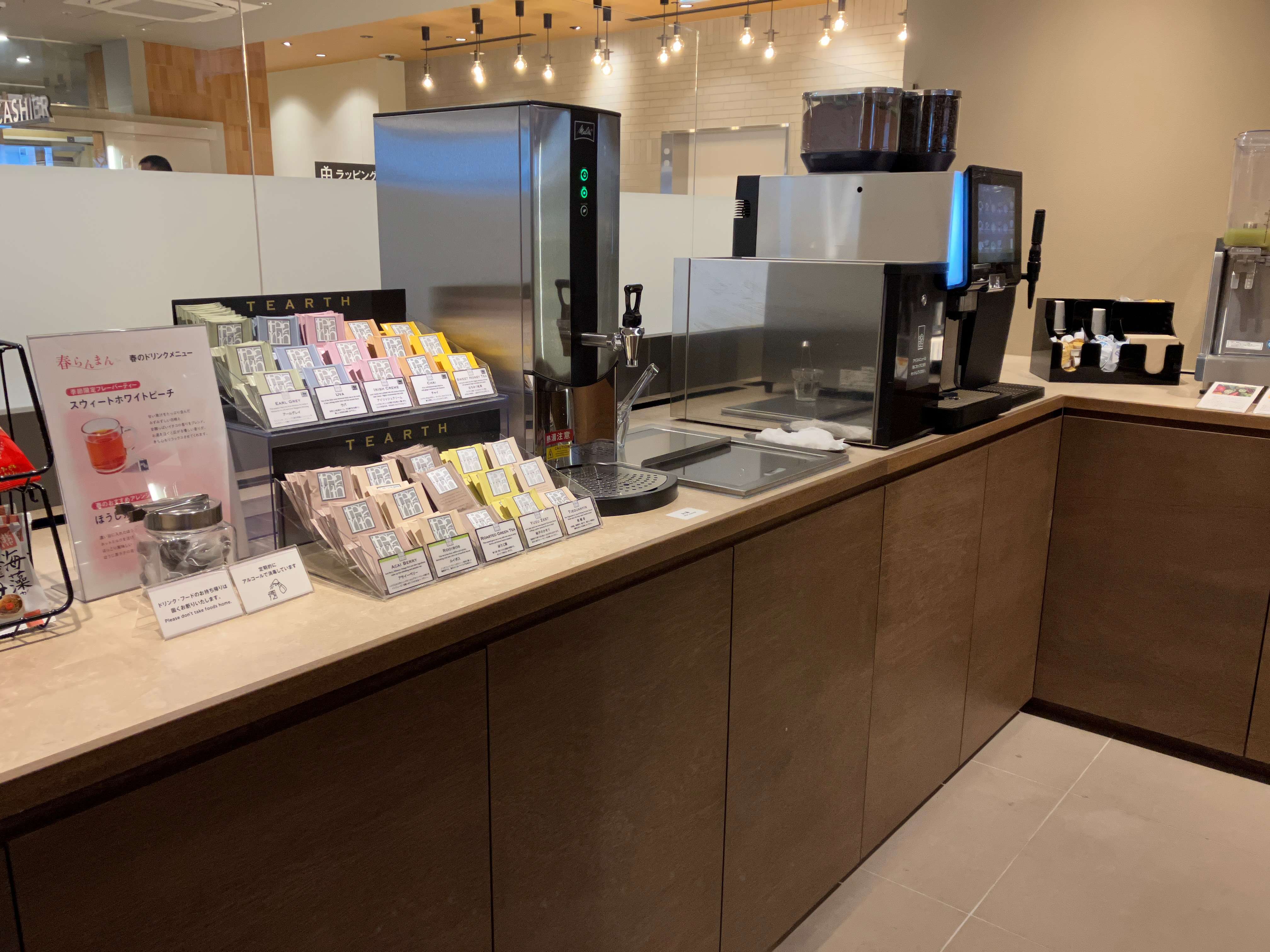 コーヒーマシンなどドリンクコーナーが充実しています。
