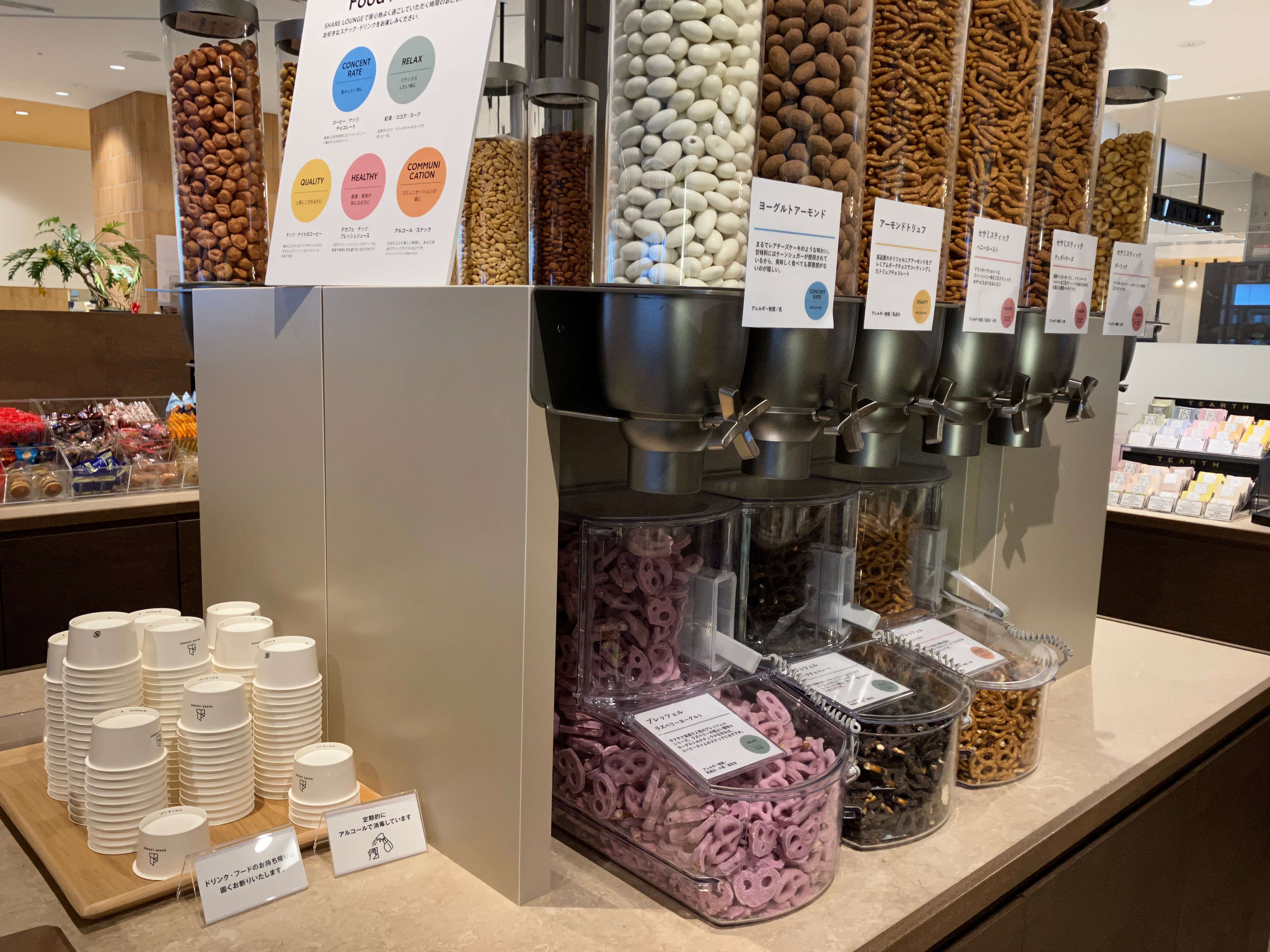 ナッツ類はディスペンサーから好きなものを取っていきます