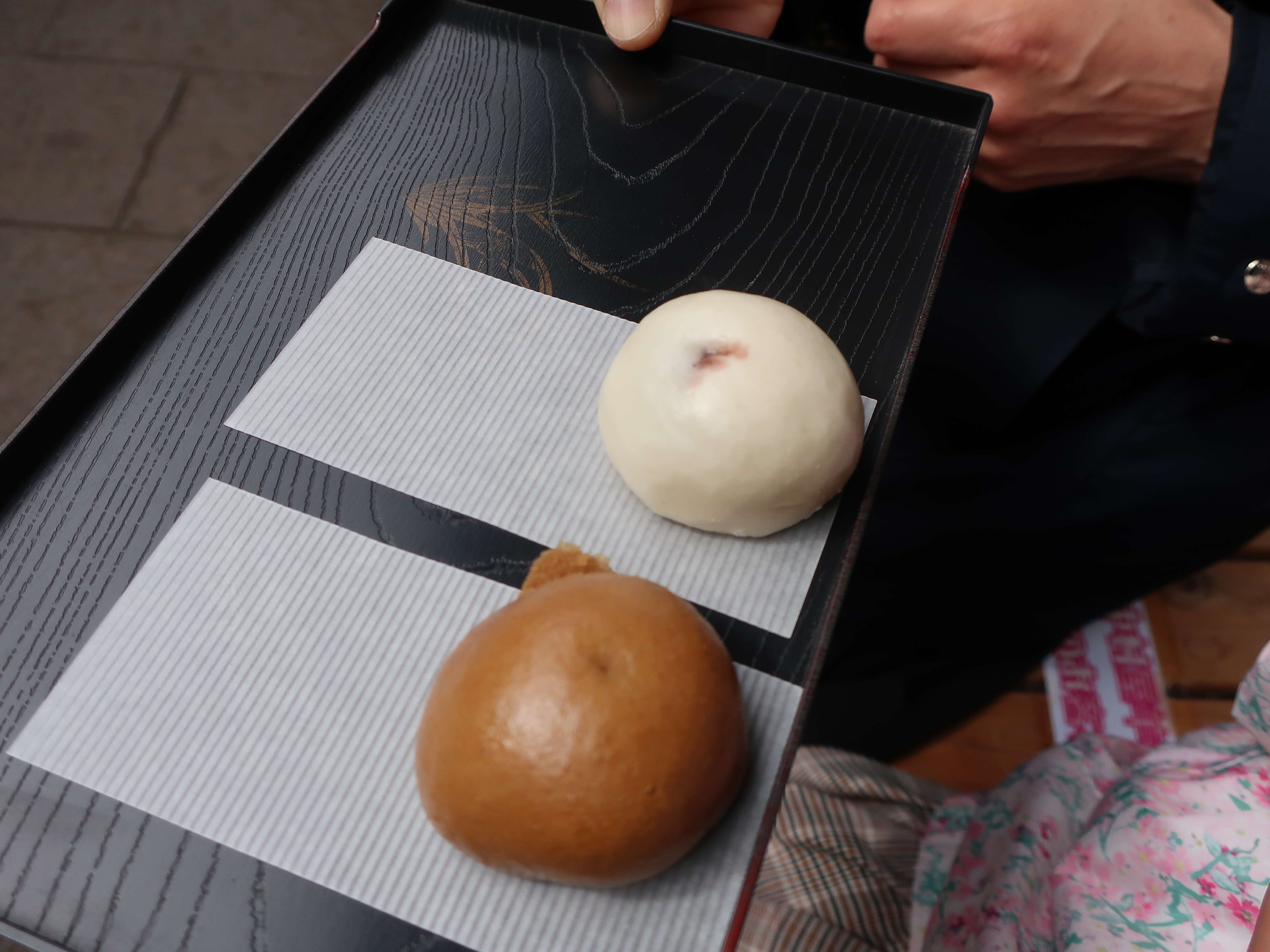 こちらの蒸した女夫饅頭が大好きです。手に持った感じが温かい。