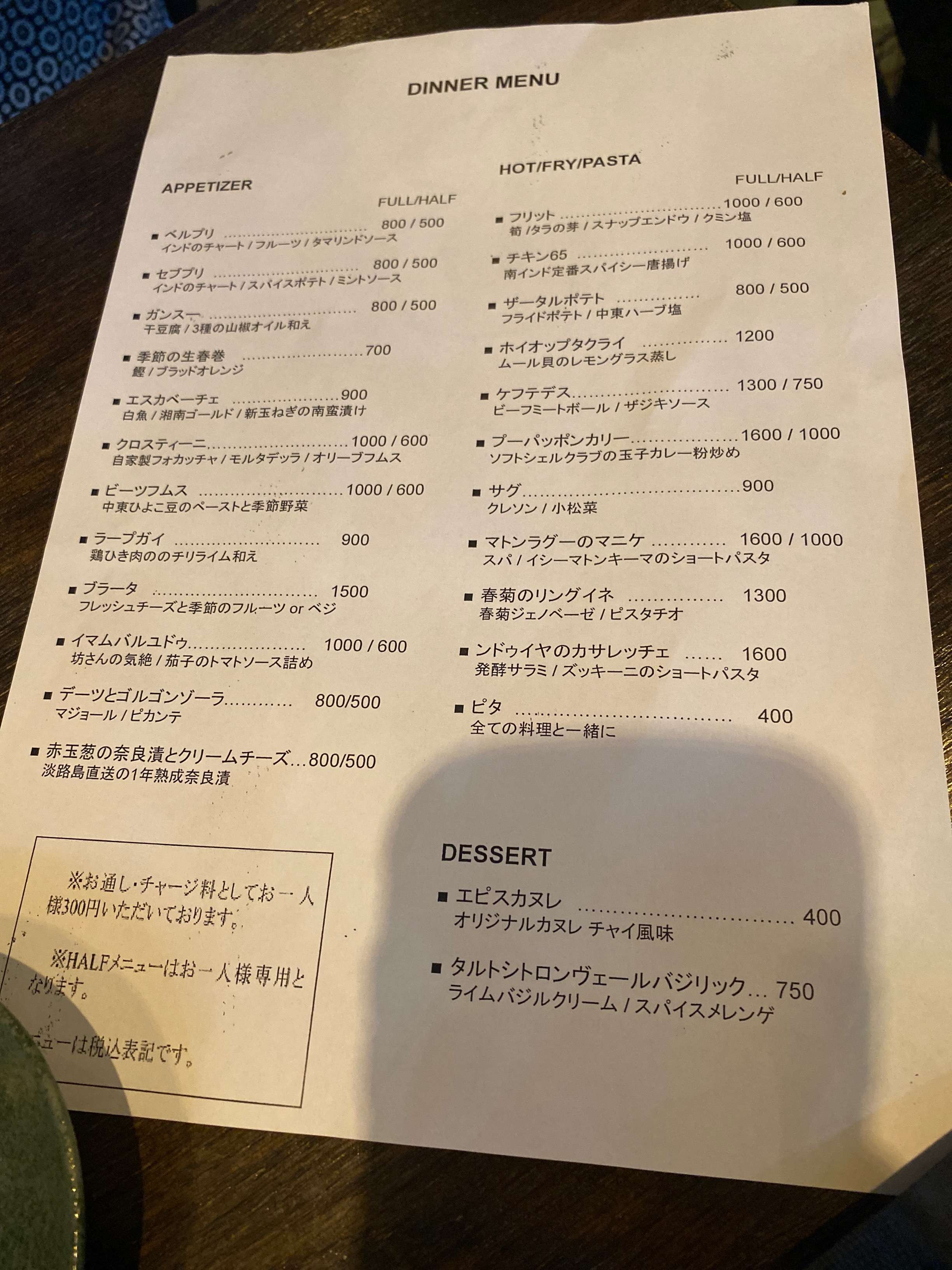 店名のベルプリはインドの屋台フードの名前とのこと。