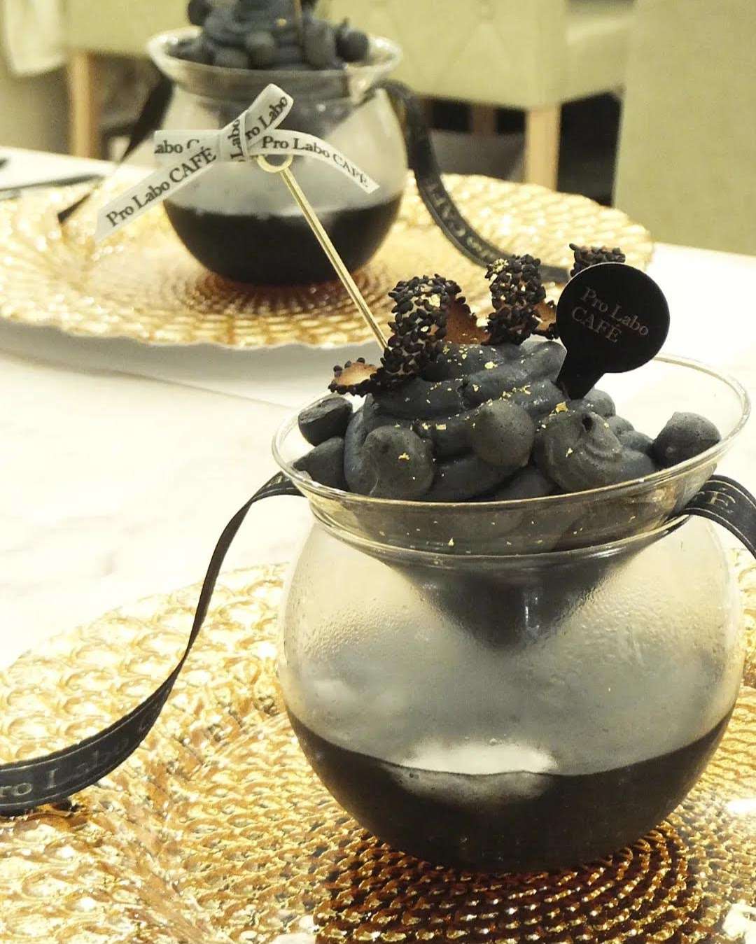 「エステプロ・ラボ」で人気の製品、活性炭のパワーに着目したサプリメント「チャコールクレンズ」を活用したデザート。