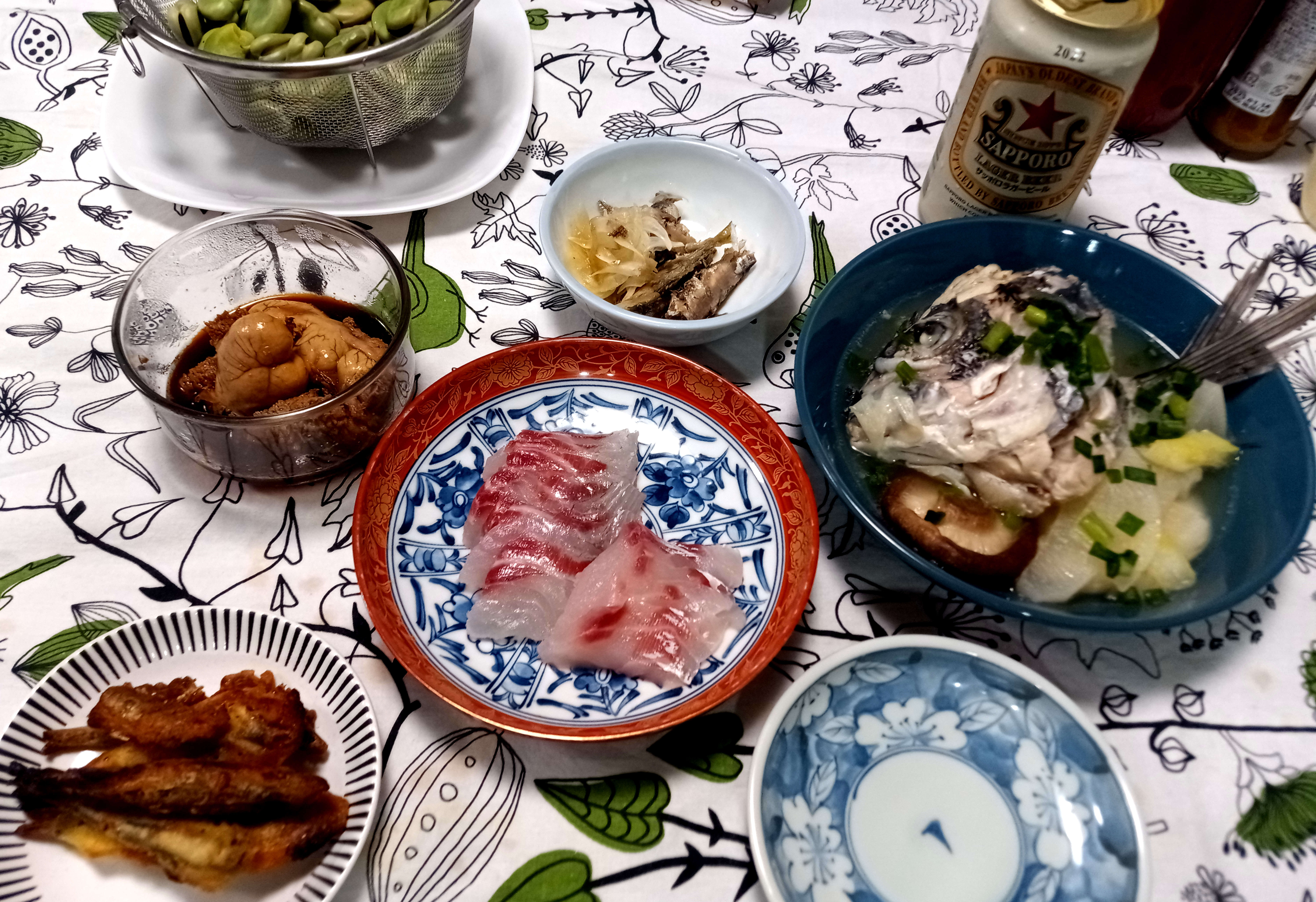 ビールとそら豆以外はみんな今日のお魚たちです。