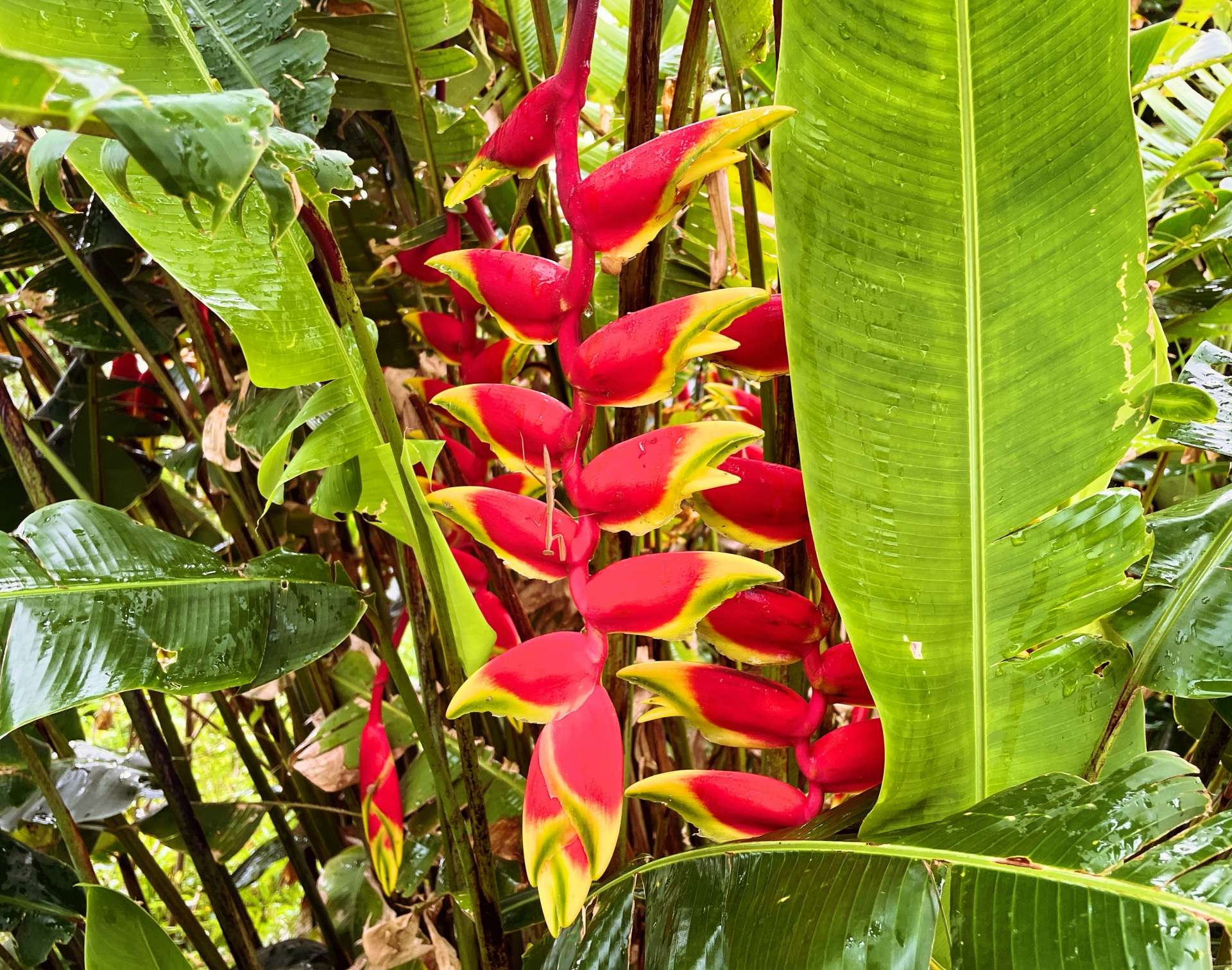 特に暑い時期に美しいのは、「ヘリコニア・ロストラータ」というちょっと難しい名前の植物。