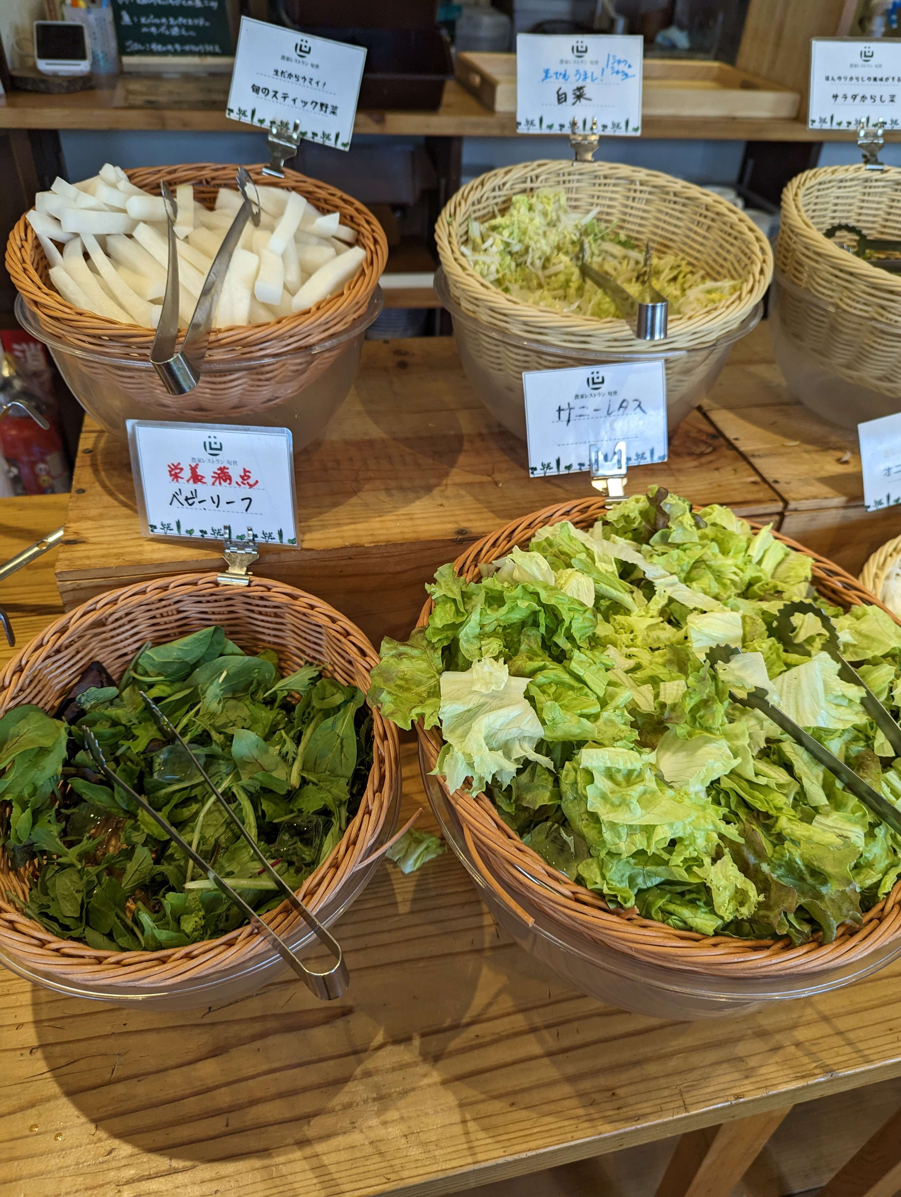 旬野菜たっぷりの畑バーとスープ、ドリンクバー付き。
