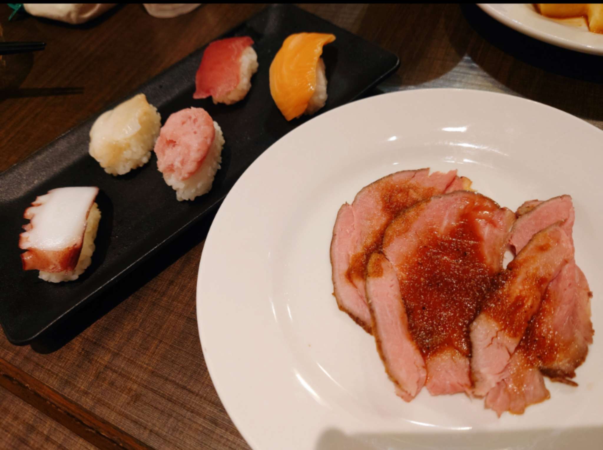 ローストビーフ、生そば、お寿司、点心、小籠包は出来たてをスマホ注文で取りに行きます。