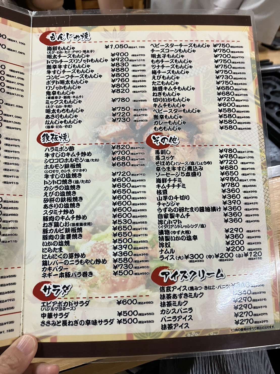 もんじゃ焼き、お好み焼き、たこ焼き、やきそば‥