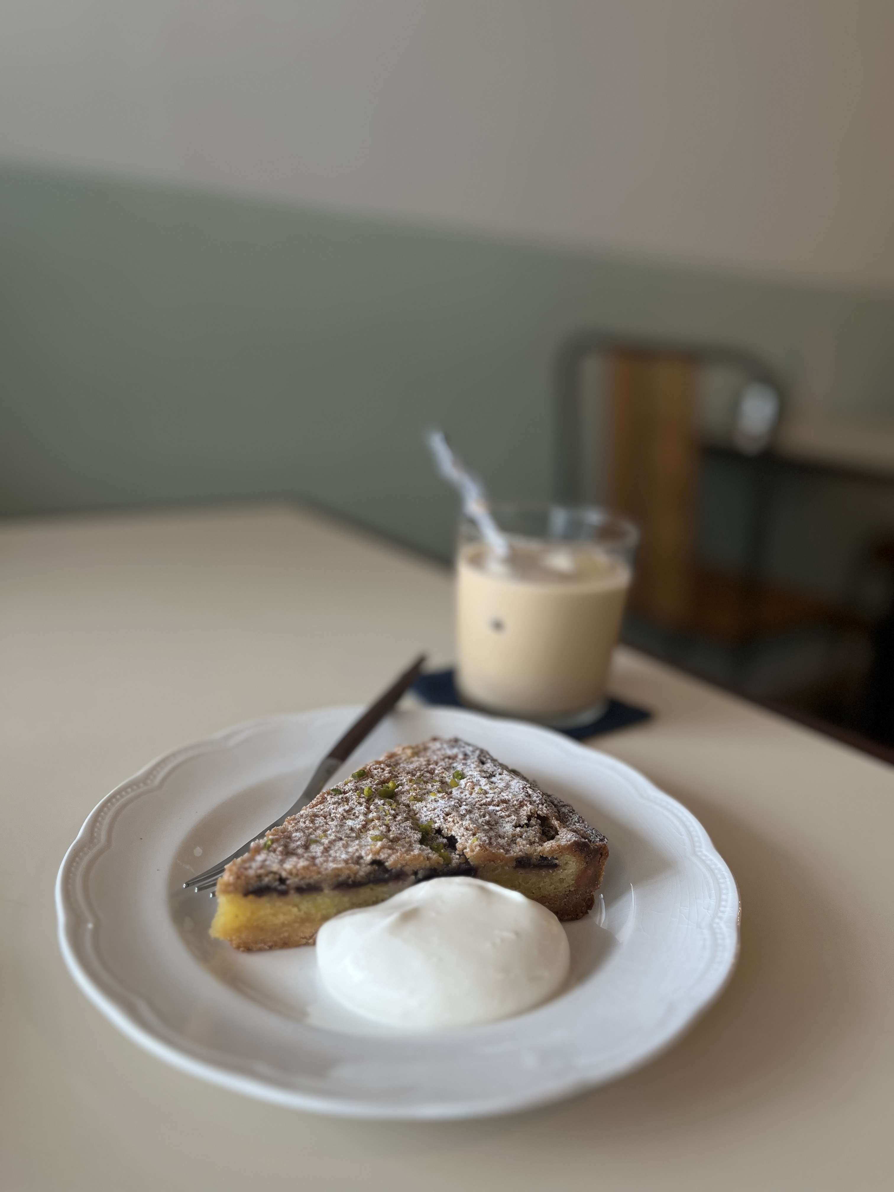 チェリーのタルトに生クリームを添えて